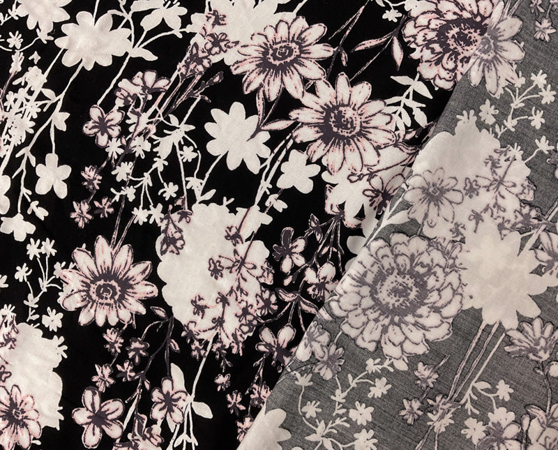 Black-White-Multi Rayon Floral Printed Challis Woven Fabric