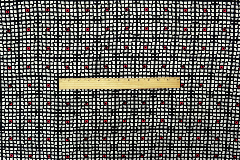 Black-White-Red Rayon Geometry Printed Twill Woven Fabric