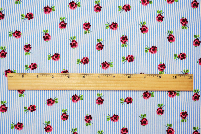 Blue-White-Multi Rayon Floral Stripe Printed Challis Woven Fabric