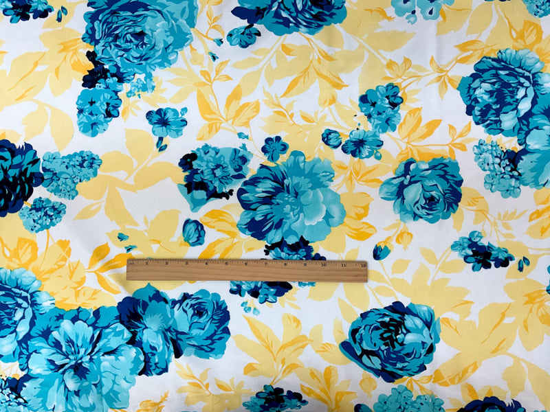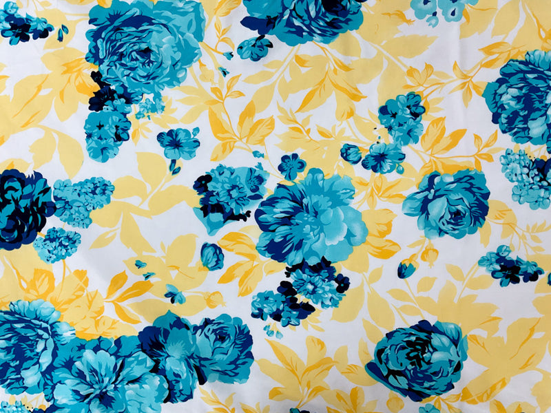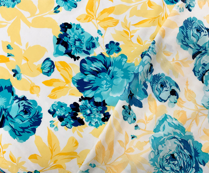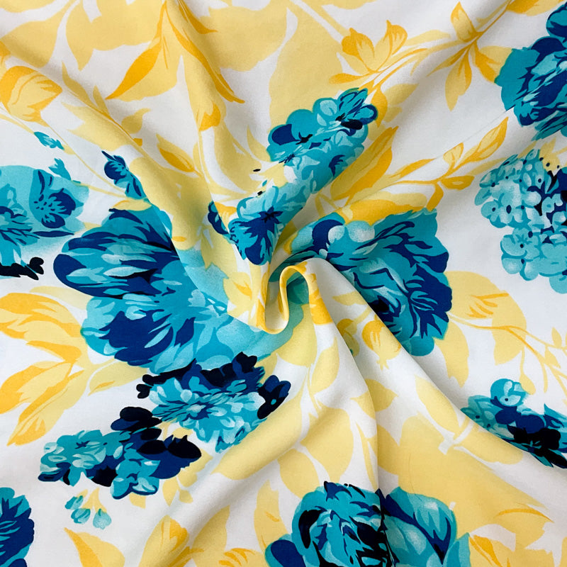 Blue-Yellow-White Rayon Floral Printed Shirting Woven Fabric