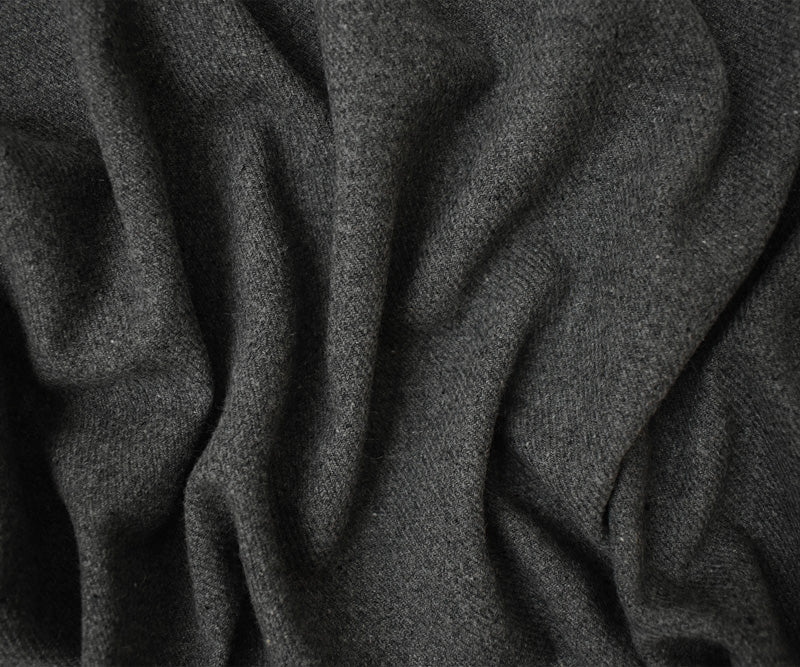 -Heather twill slightly double brushed jacketing with wool for softened hand feel and subtle color variation.