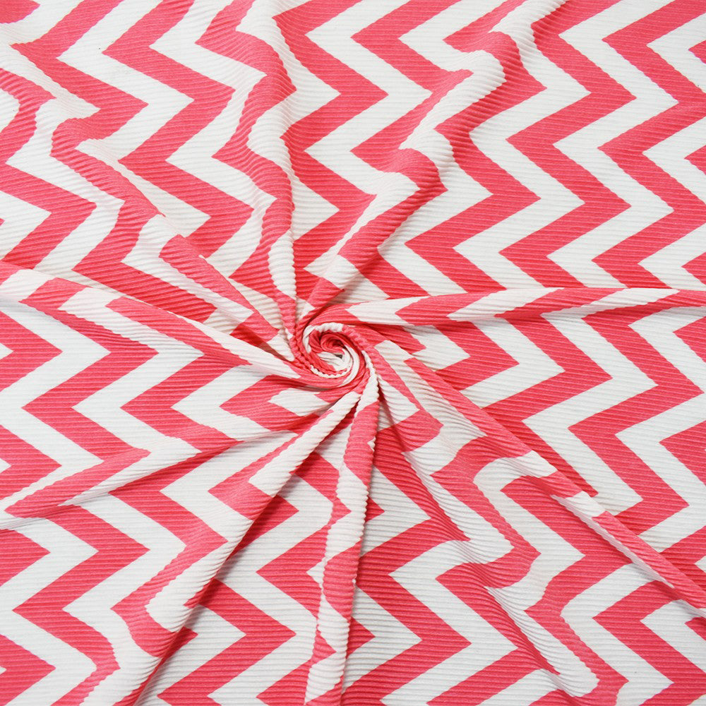 Pink-White Poly Stretch Spandex Chevron Print Pleated Jersey Knit Fabric