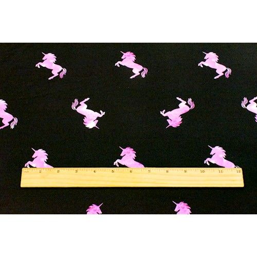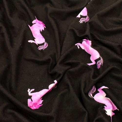 Pink/ Black Unicorn Printed Double Brushed Stretch ITY Knit Fabric
