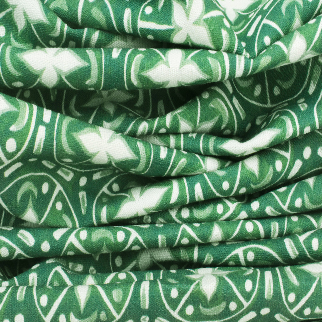 -100% cotton slubbed woven fabric printed with a tile-like morrocan inspired pattern