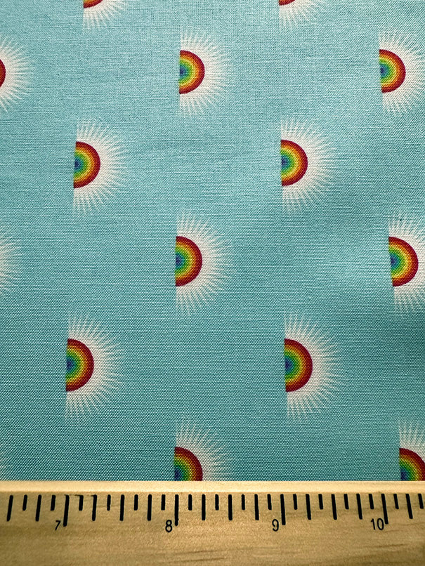 Aqua Multi Rainbow Tula Pink Quilting Print Cotton Fabric