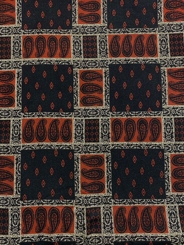 Red and Black Bandana Patchwork Print Rayon Challis Fabric