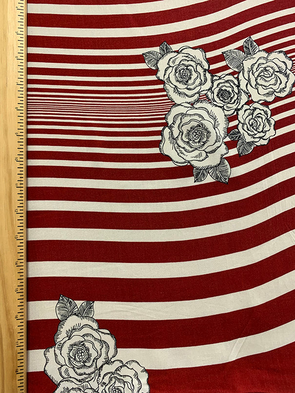 Red Rose Stripe Print Rayon Challis Fabric