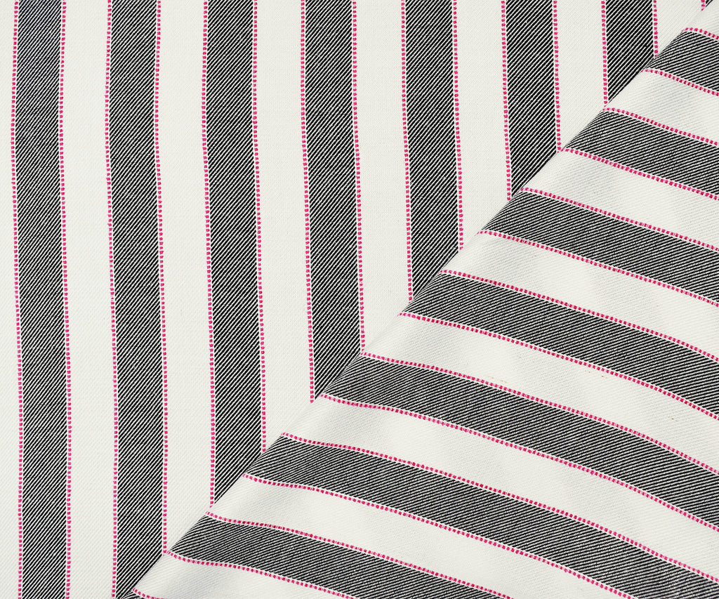 Black-White-Pink Rayon Famous Maker Vertical Stripe Twill Woven Fabric