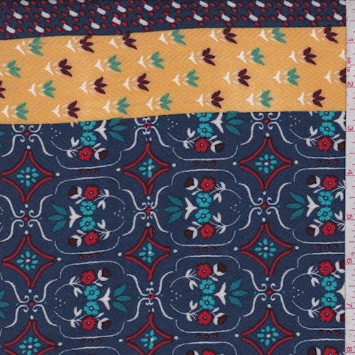 Deep Blue Floral Lattice Rayon Challis Fabric