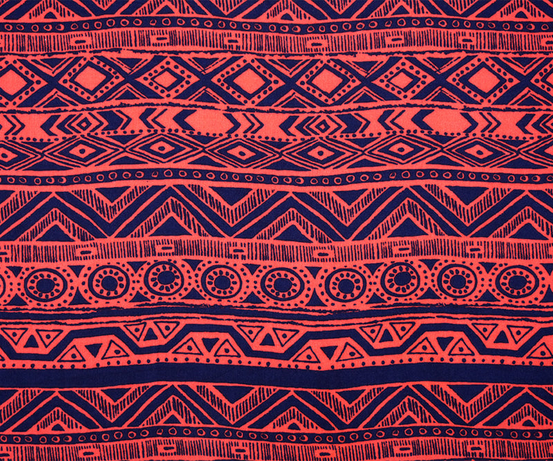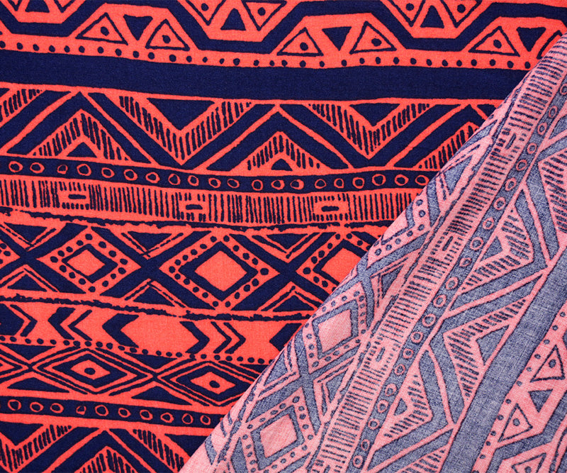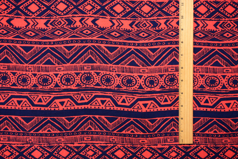 Red-Blue Rayon Aztec Printed Challis Woven Fabric