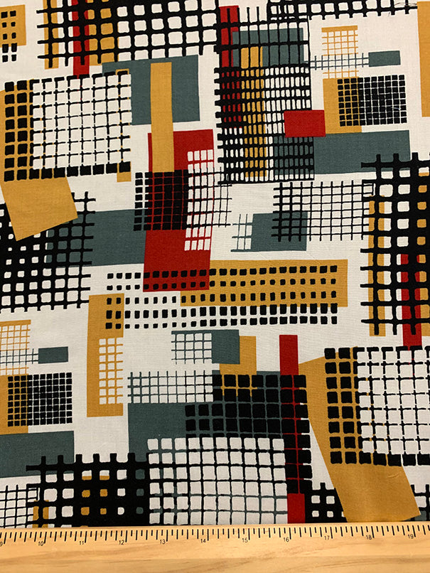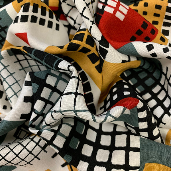1 7/8 YD PC-Gold and Black Abstract Print Rayon Challis Fabric