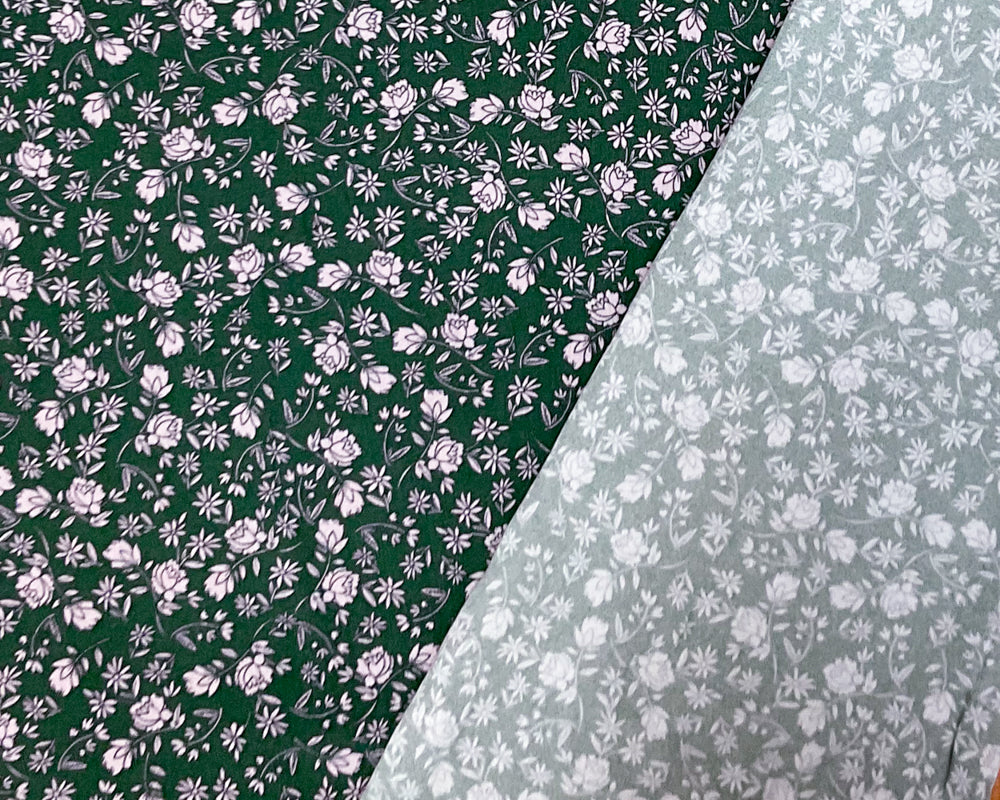 -Green-Gray Rayon Floral Printed Crepe Faille Woven Fabric