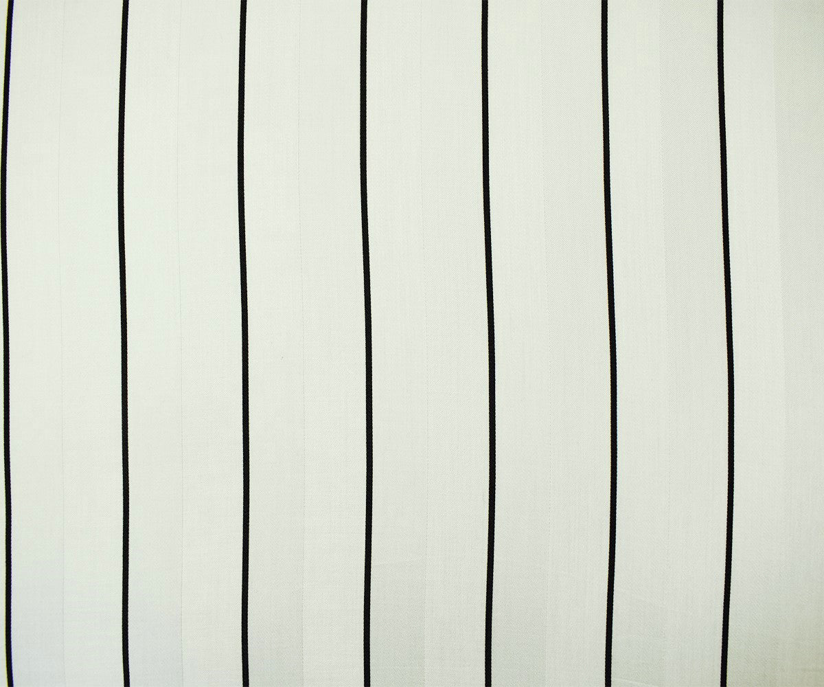 Ivory-Black Rayon-Cotton Famous Maker Vertical Stripe Woven Suiting Fabric