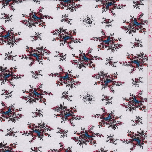 1 3/4 YD PC-White/Maroon Floral Bouquet Leno Jacquard Fabric