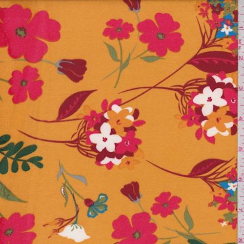 2 YD PC-Orange/Coral Pop Floral Double Brushed Jersey Knit Fabric