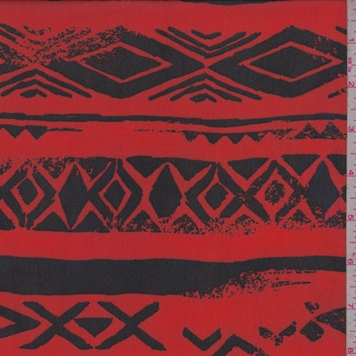 3 3/4 YD PC-Bright Red/Black Tribal Stripe Georgette Fabric