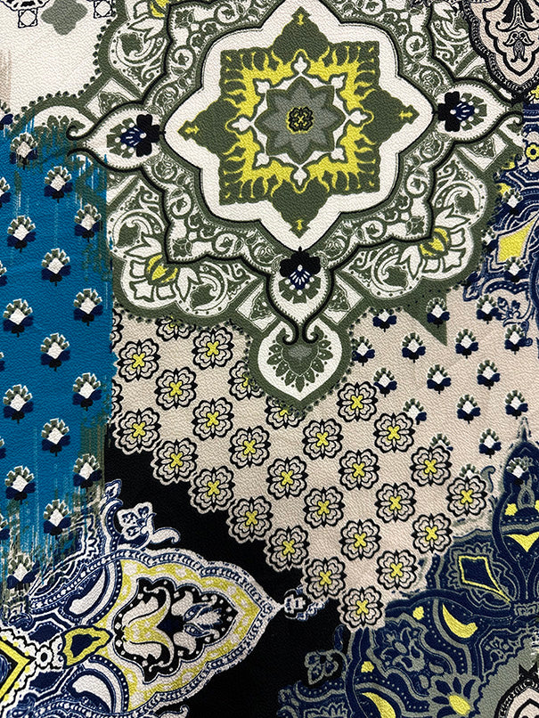 4 1/2 YD PC-Beige Multi Medallion Print High Crepe Fabric