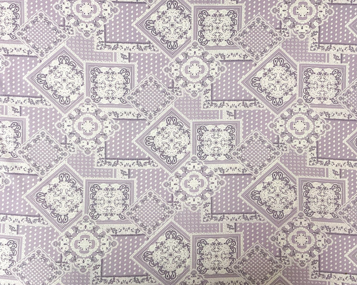 4 1/2 YD PC -Purple-Ivory Poly Spandex Stretch Paisley Print Double Brush Jersey Knit Fabric
