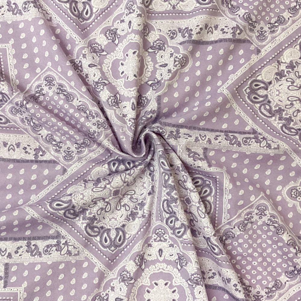 4 1/2 YD PC-Purple-Ivory Poly Stretch Spandex Paisley Print DB Jersey Knit Fabric