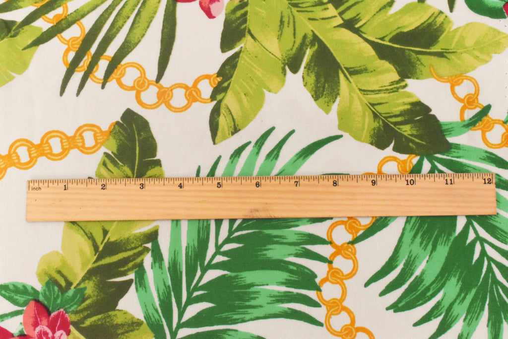 4 1/8 YD PC-White-Green-Multi Floral And Chain Printed Poly Chiffon Woven Fabric