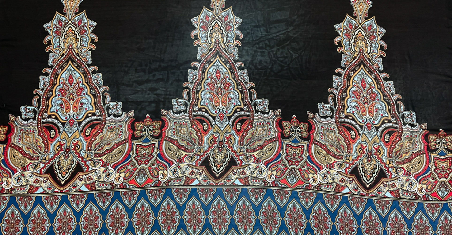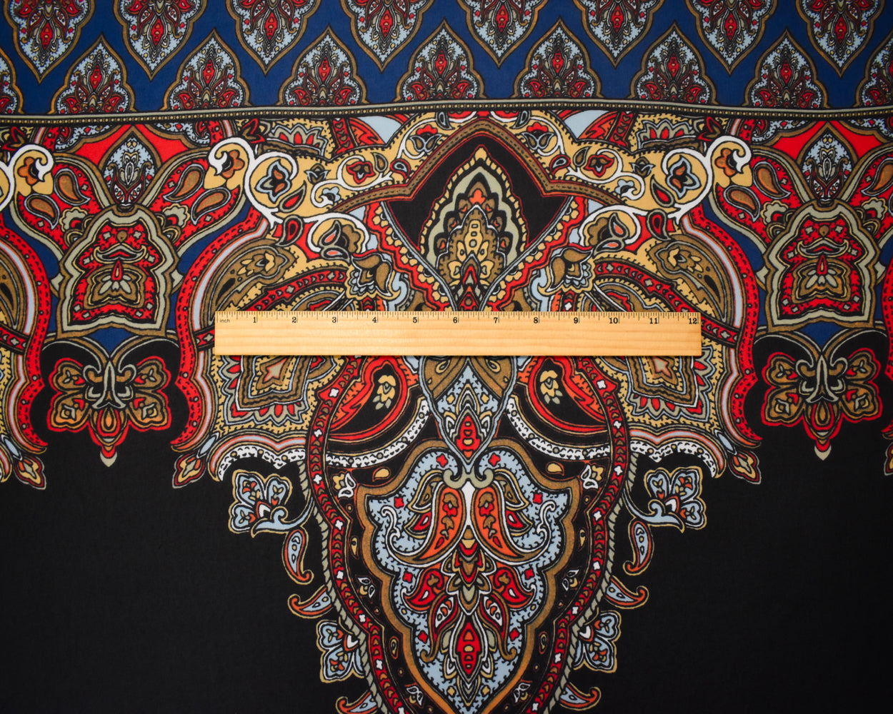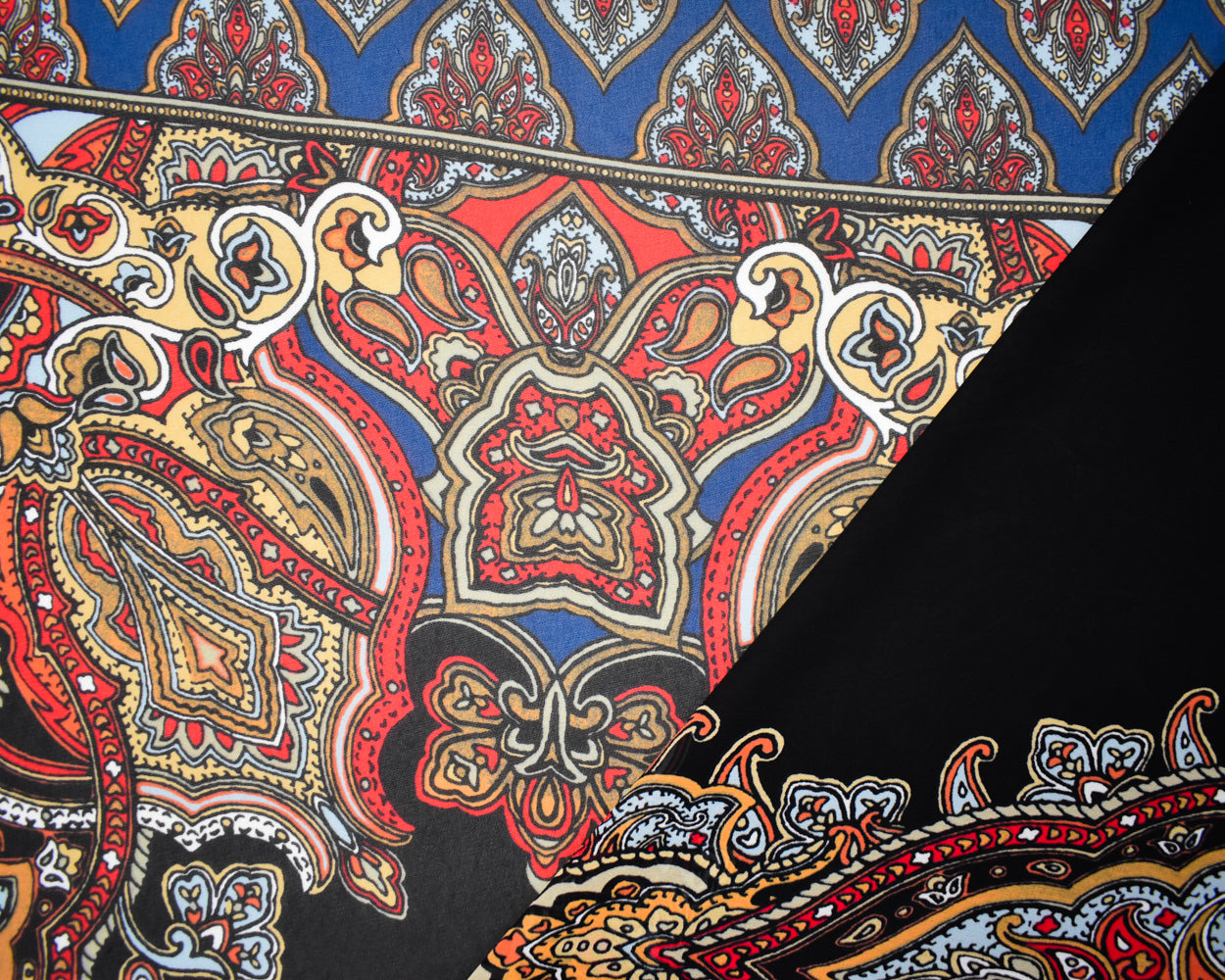 Black-Orange-Multi Poly Paisely Baroque Border Printed Chiffon Woven Fabric