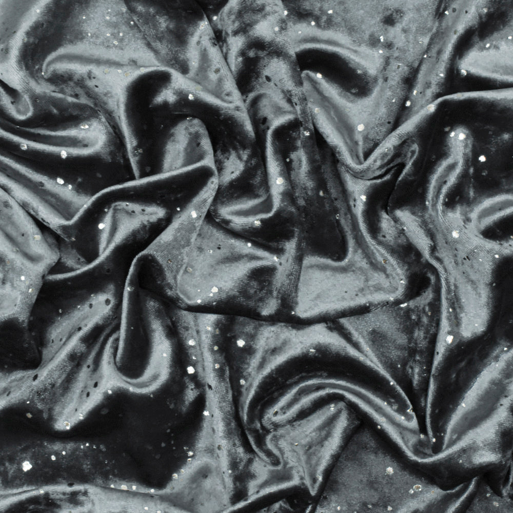 Galaxy Blue-Silver Drip Dot Pattern Printed Stretch Velvet Knit Fabric