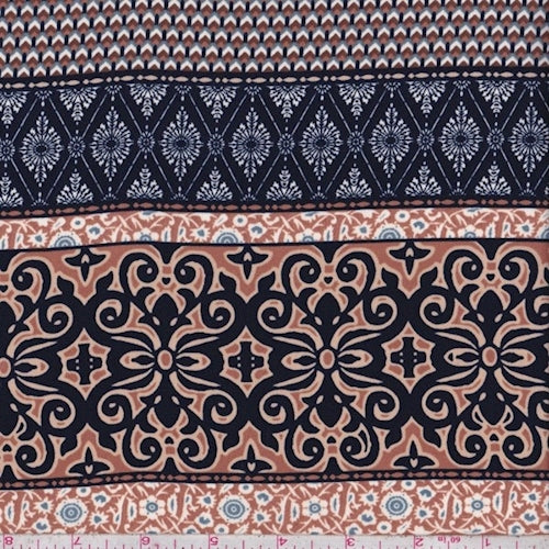 Navy/Nutmeg Baroque Stripe Crepe Georgette Fabric