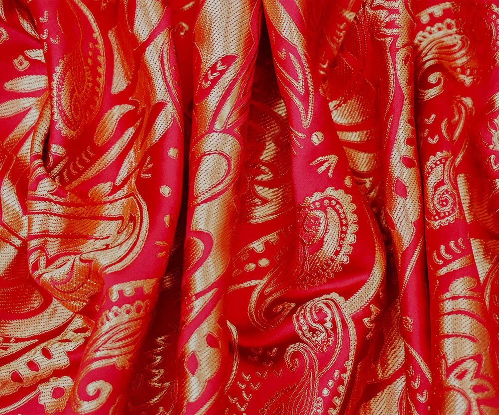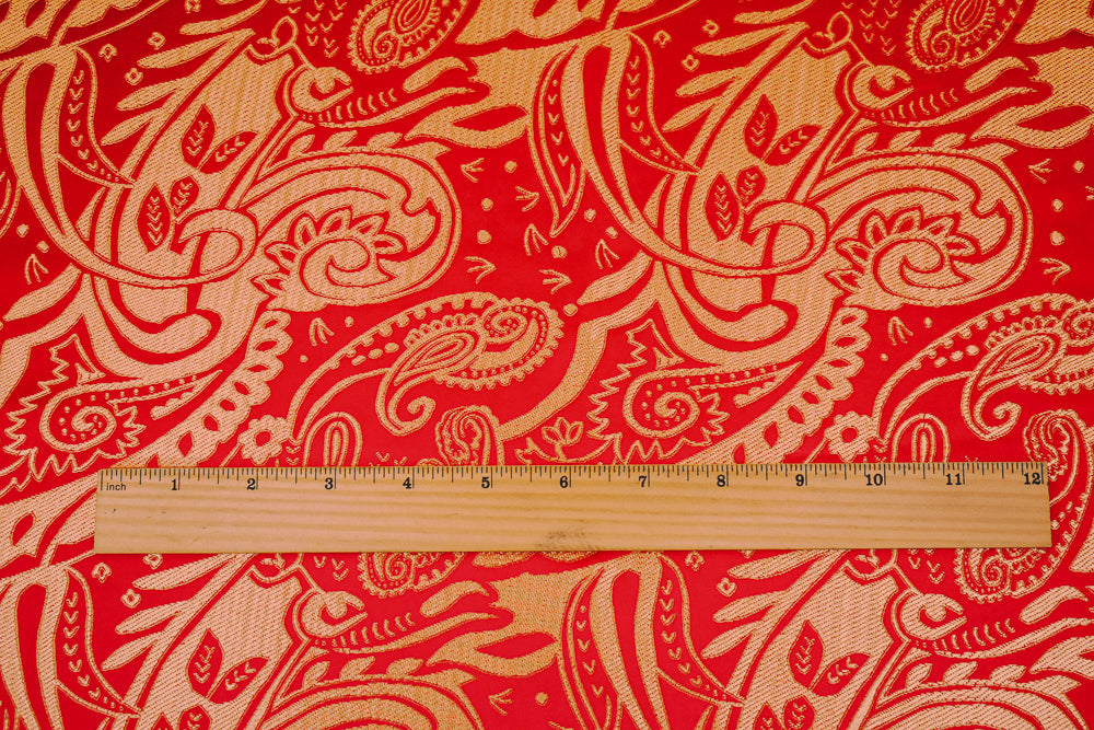 Red-Brown Polyester Paisley Baroque Pattern Chinese Brocade Fabric