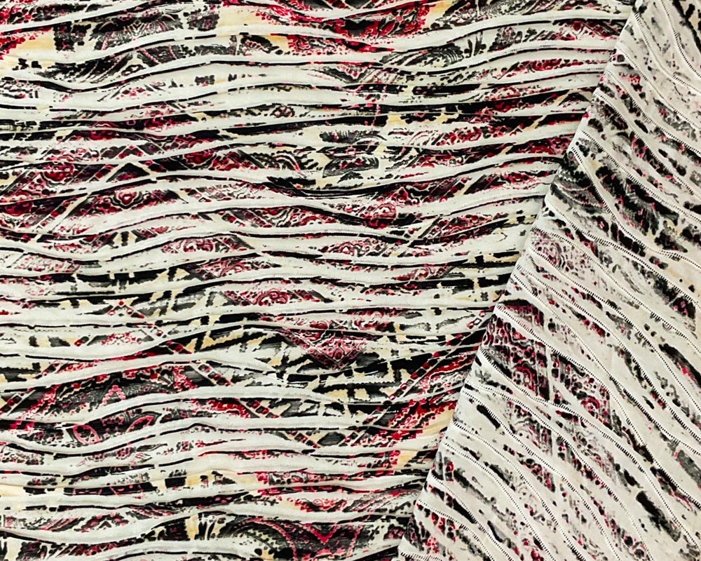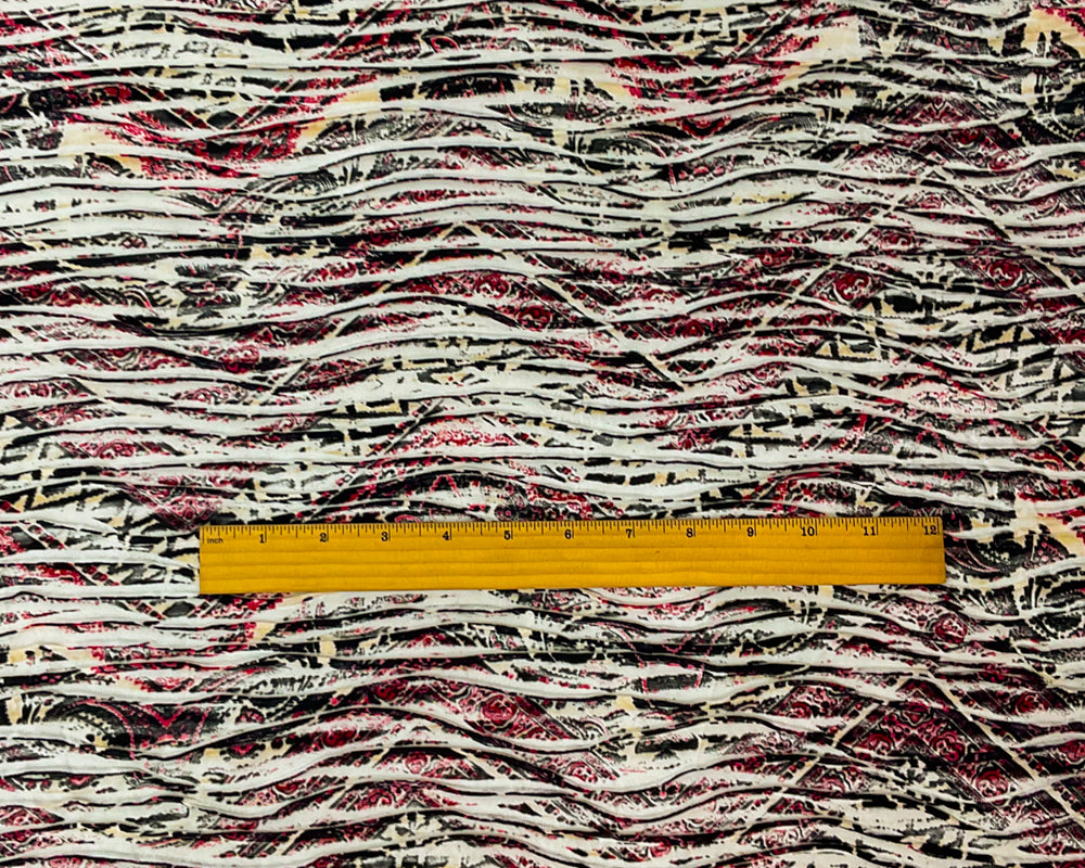 Red-Multi Poly Chevron Baroque Printed Knife Pleat Knit Fabric