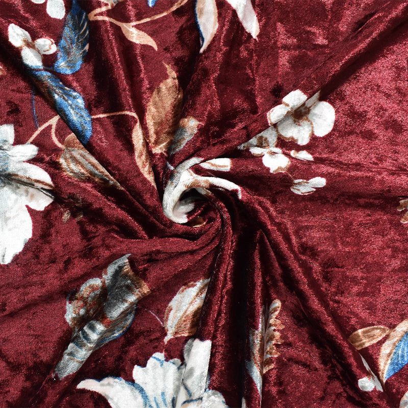 Red-Multi Poly Stretch Floral Printed Crushed Velvet Knit Fabric
