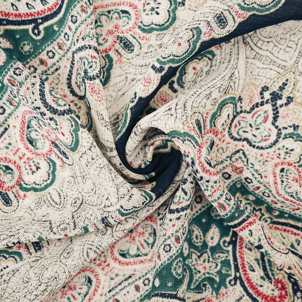 Turquoise-Blue-Multi Nylon Tile Baroque Printed Sheer Woven Fabric