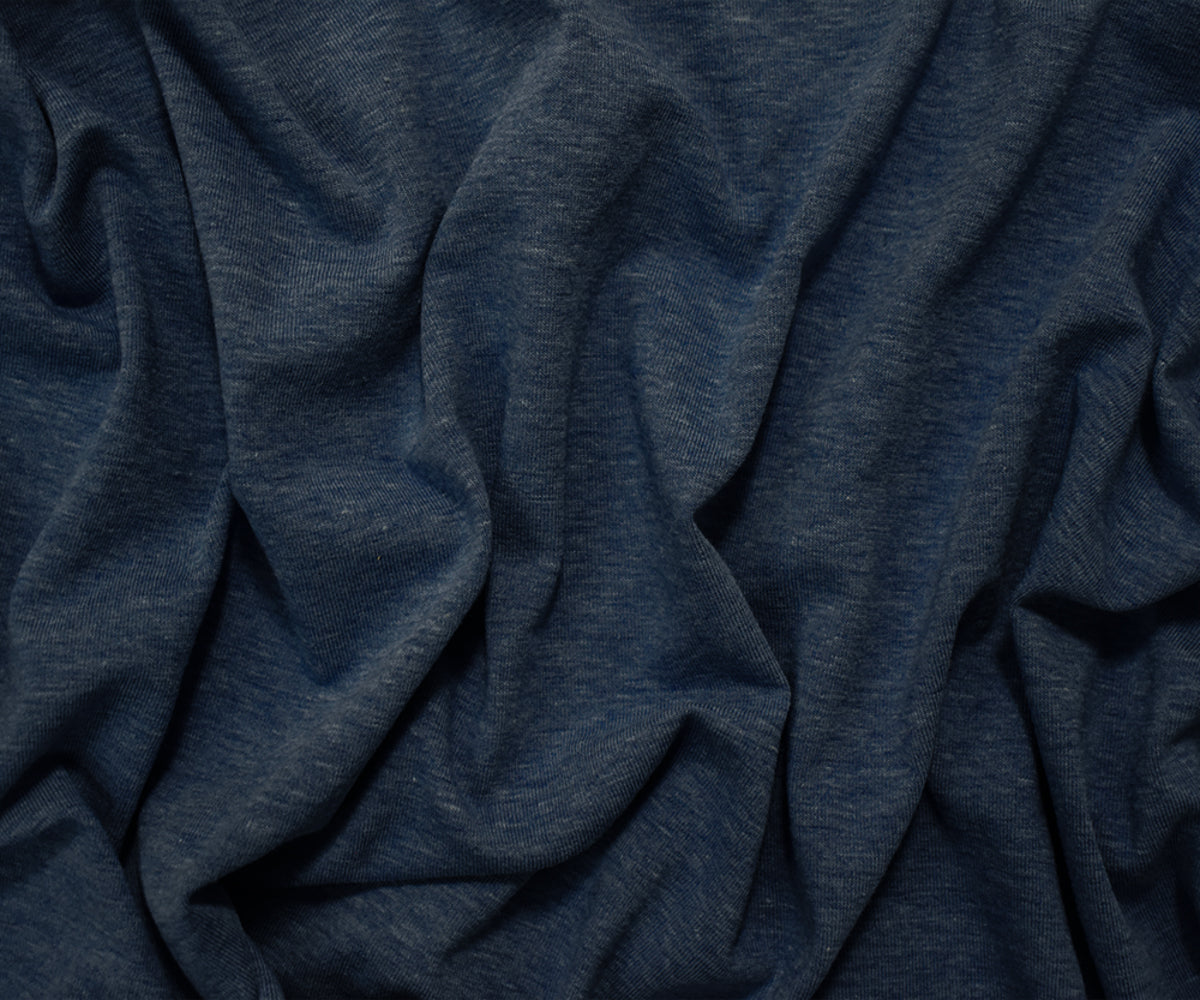 -Top quality medium weight cotton spandex knit in an on trend darker medium denim blue heather effect color. The perfect fabric staple! True medium 10 oz weight with a soft hand, good 4 way stretch, and nice recovery.