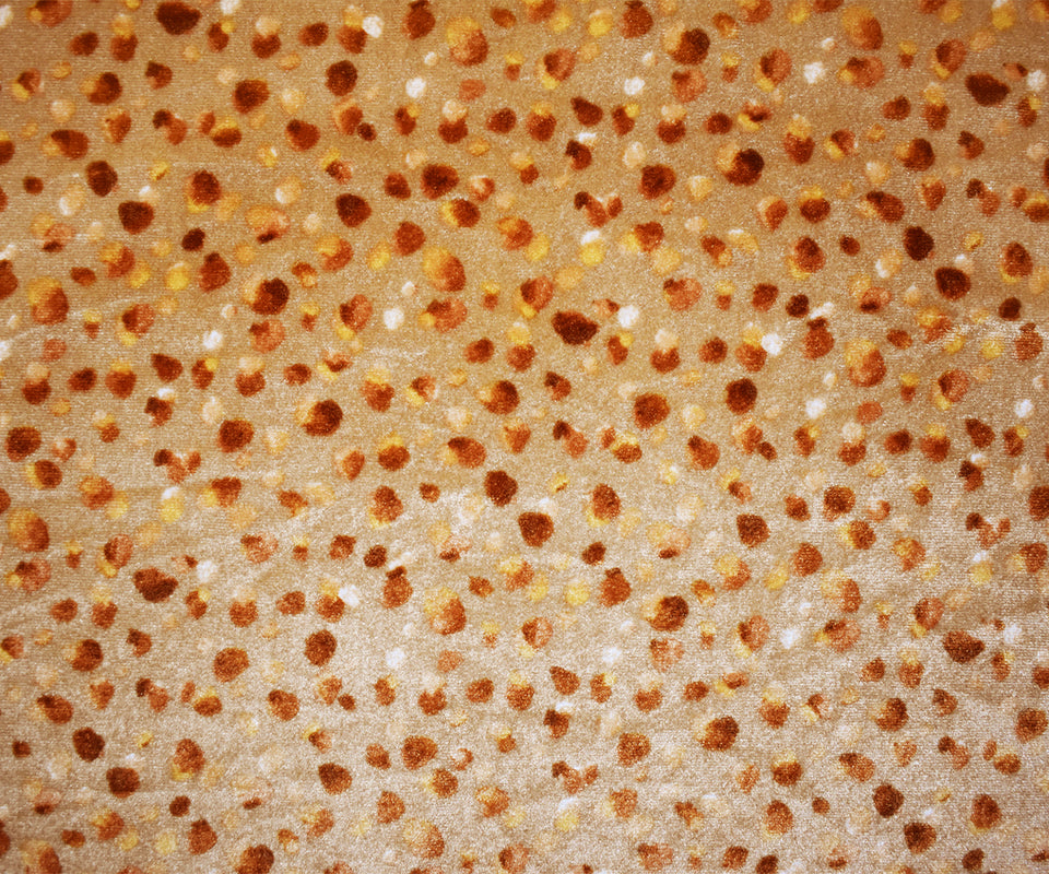 -Plush velvet knit with an abstract spot-like print pattern. The poly-spandex blend offers comfortable stretch and easy recovery. Features a dense, soft pile with a luxurious texture, ideal for elegant and cozy apparel.