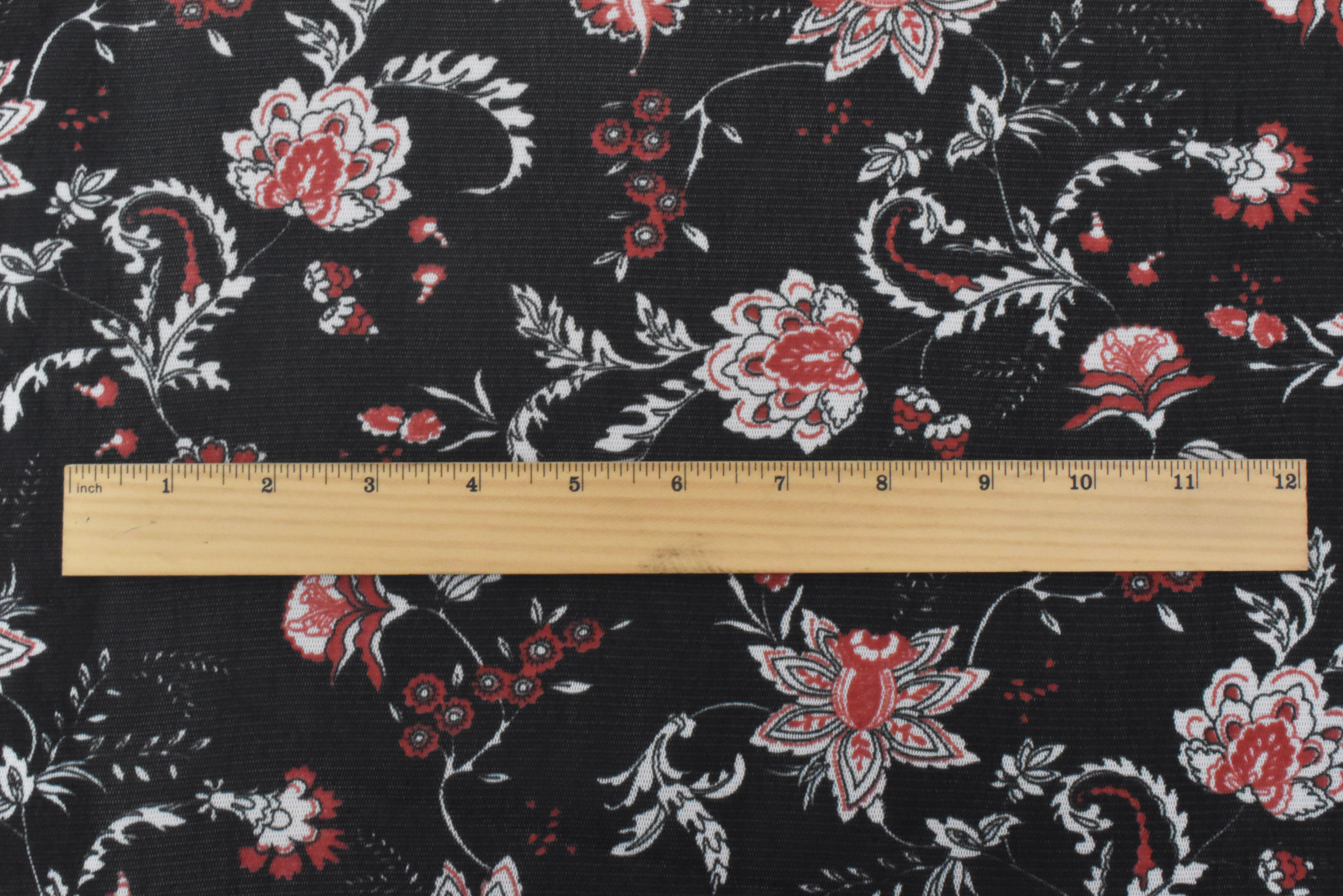 Black-White-Orange Floral Printed Stretch Poly Spandex Mesh Knit Fabric