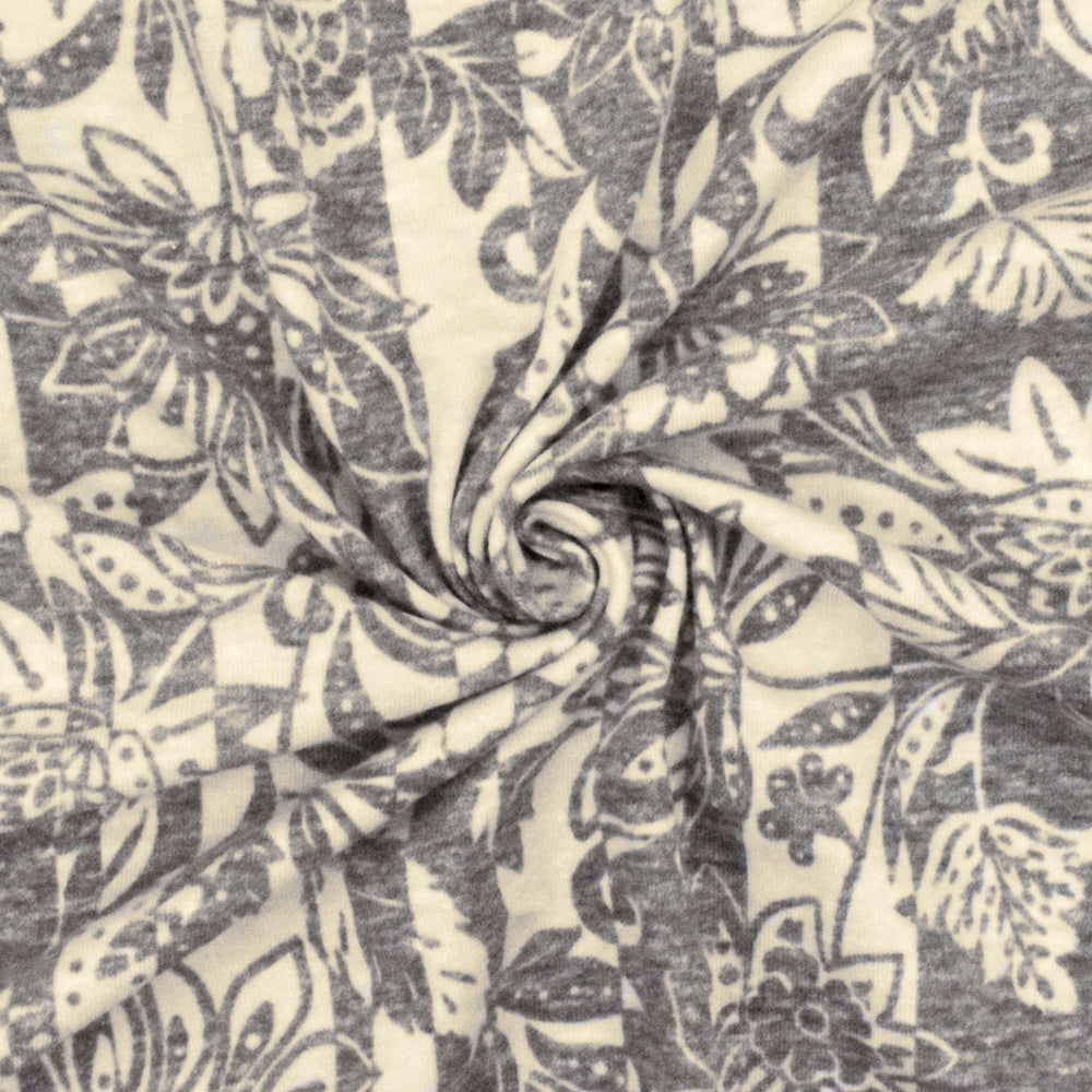 Heather Gray-Beige Floral Stripe Printed Stretch Jersey Knit Fabric