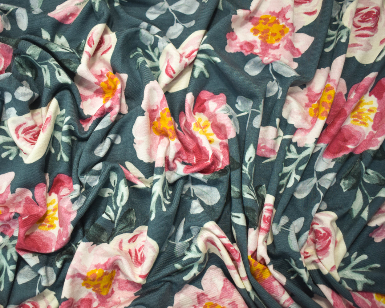 Pink-Teal-Multi Rayon Modal Floral Printed Stretch Spandex Jersey Knit Fabric