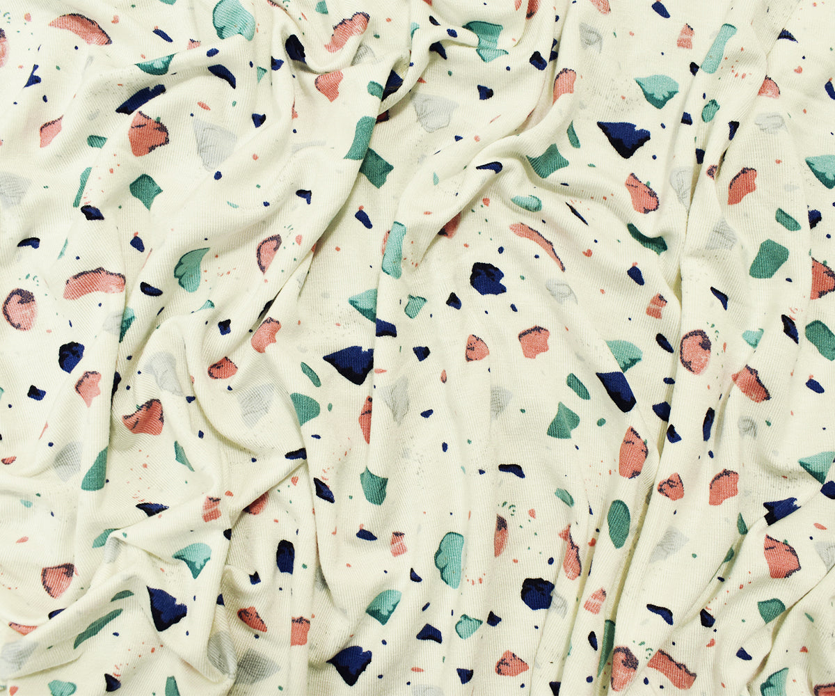 Teal-Multi Rayon Modal Pebbles Print Stretch Spandex Jersey Knit Fabric