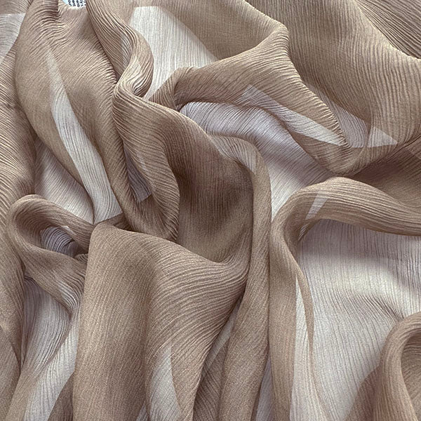 Light Brown Woven Crinkled Silk Chiffon Fabric