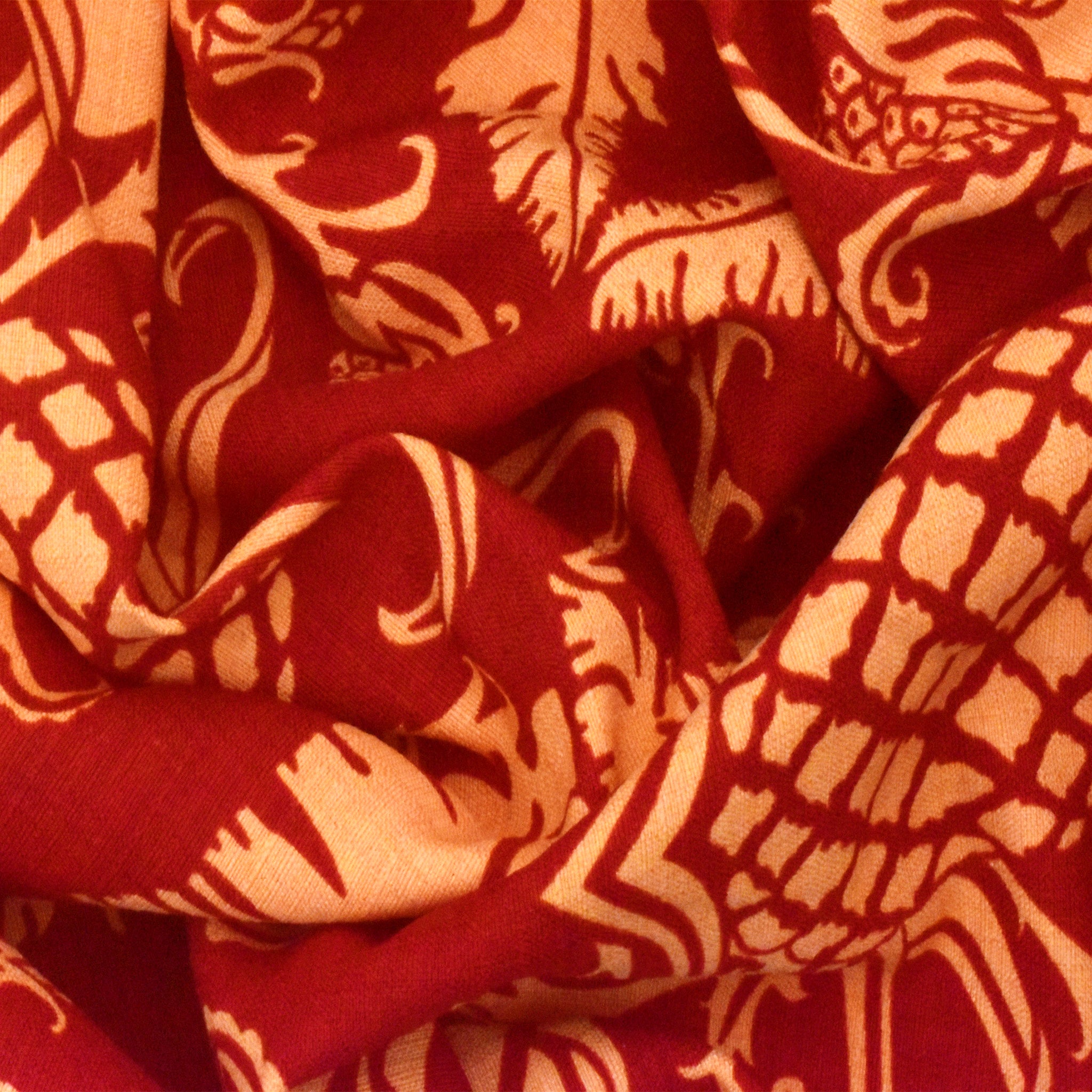 Orange-Red Pineapple Printed Cross-Hatch Woven Fabric