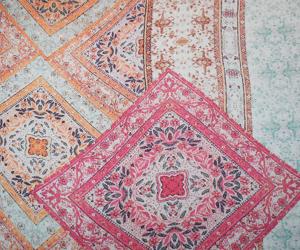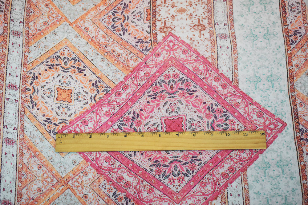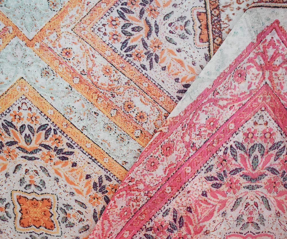 Orange-Pink-Multi Moroccan Bandana Printed Poly Chiffon Woven Fabric