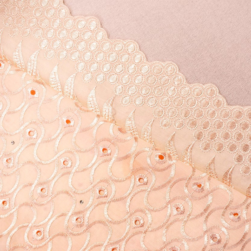 Beige Poly-Cotton Embroidered Floral Scallop Rhinestone Woven Fabric