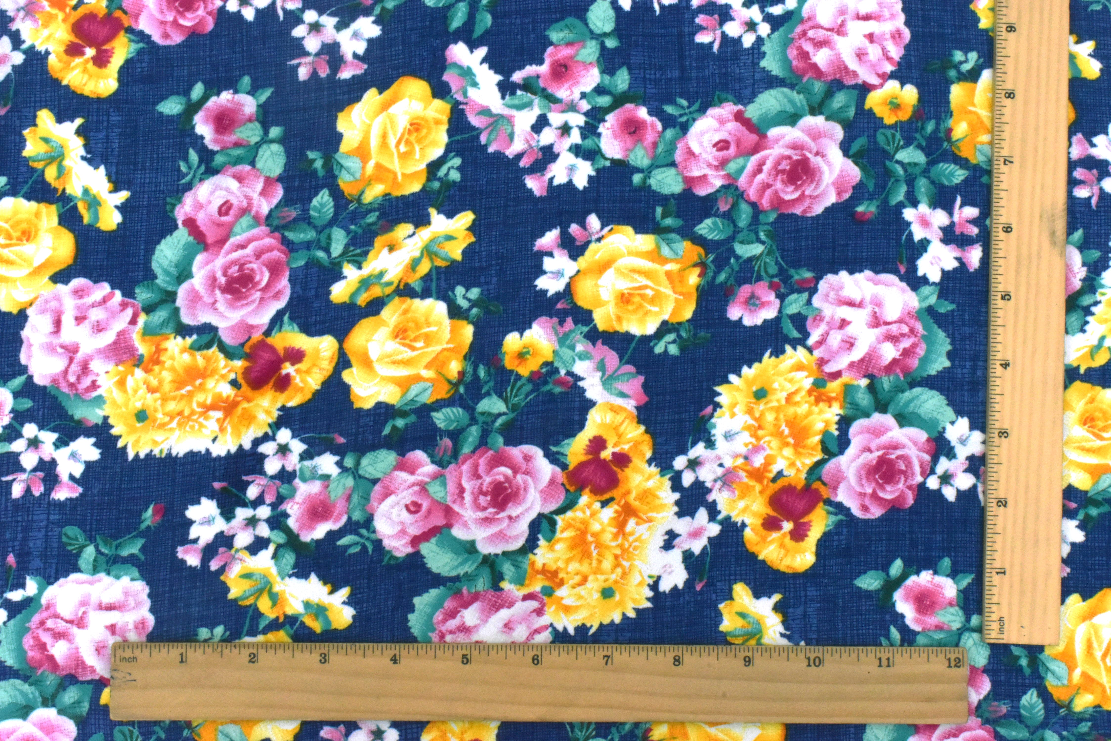 Nile Blue-Yellow-Multi Floral Printed Polyester Georgette Woven Fabric