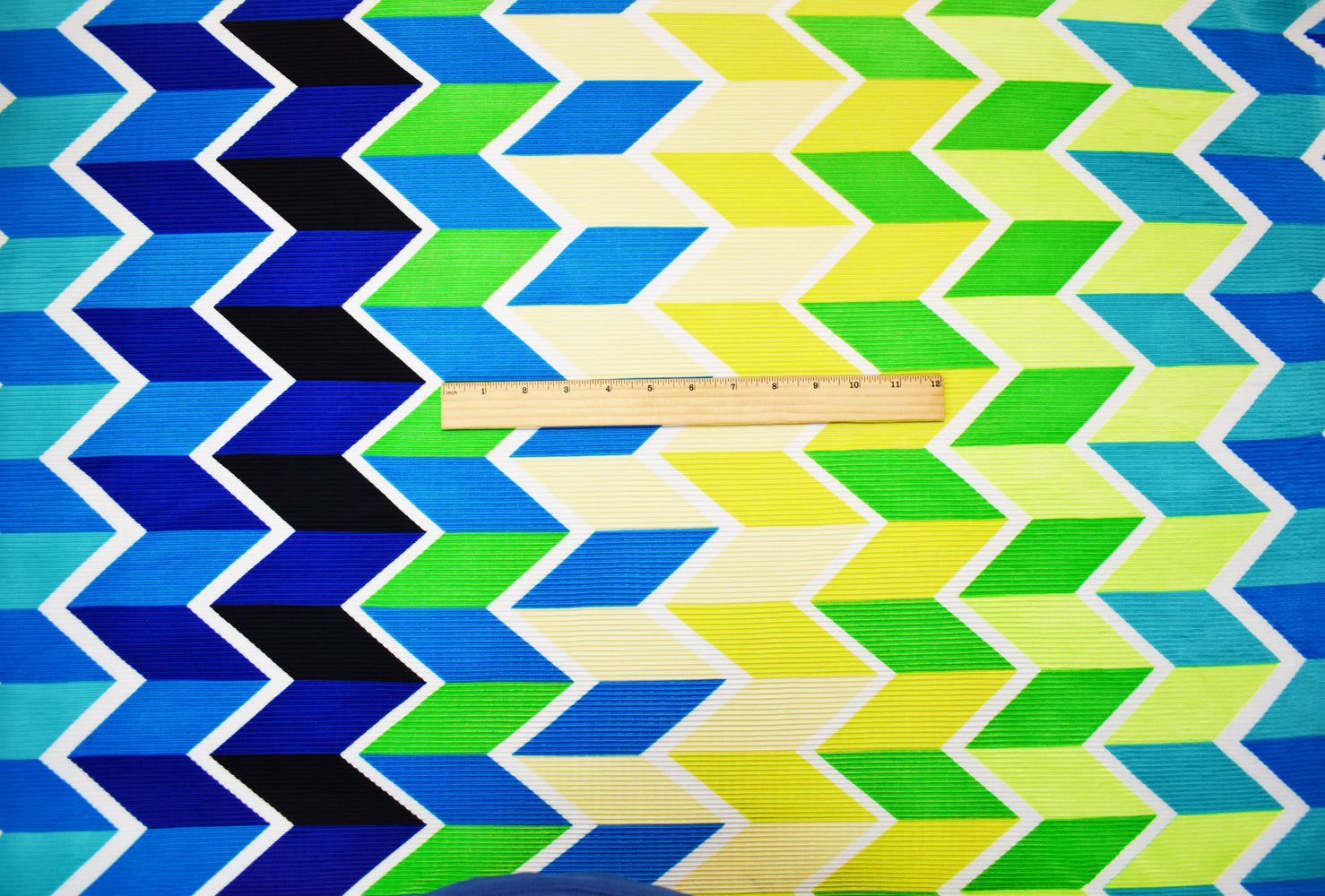 Green-Multi Poly Stretch Spandex Chevron Print Pleated Interlock Knit Fabric