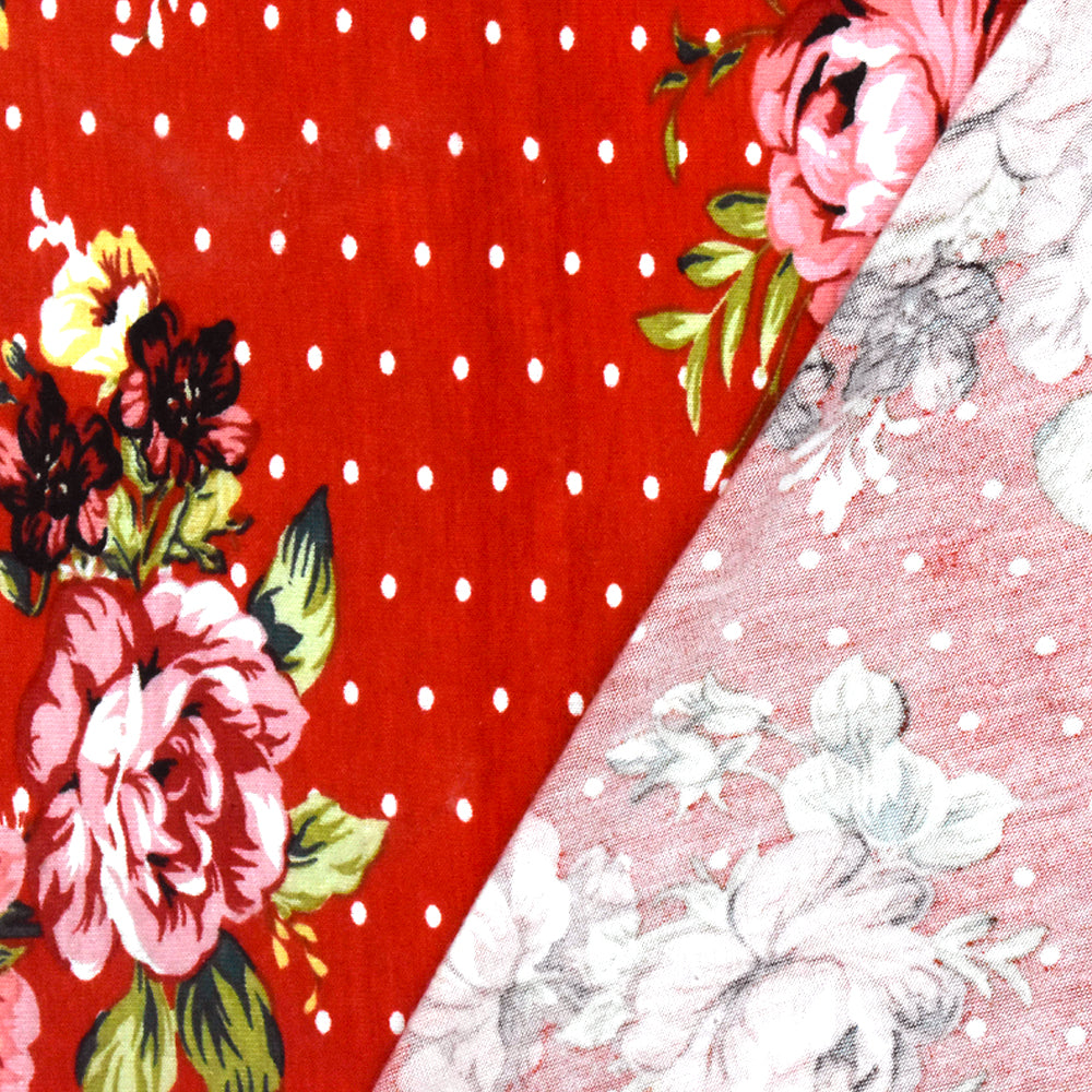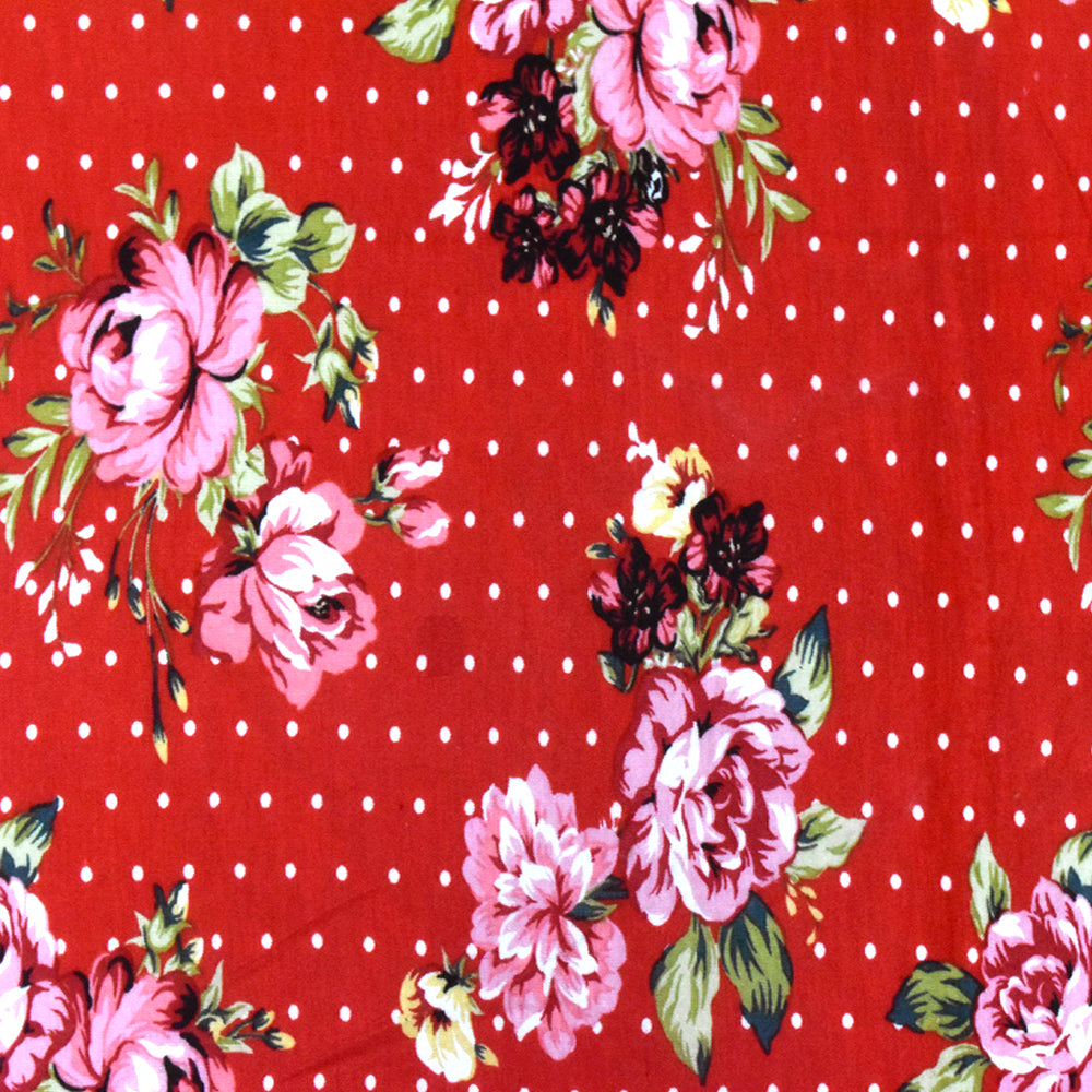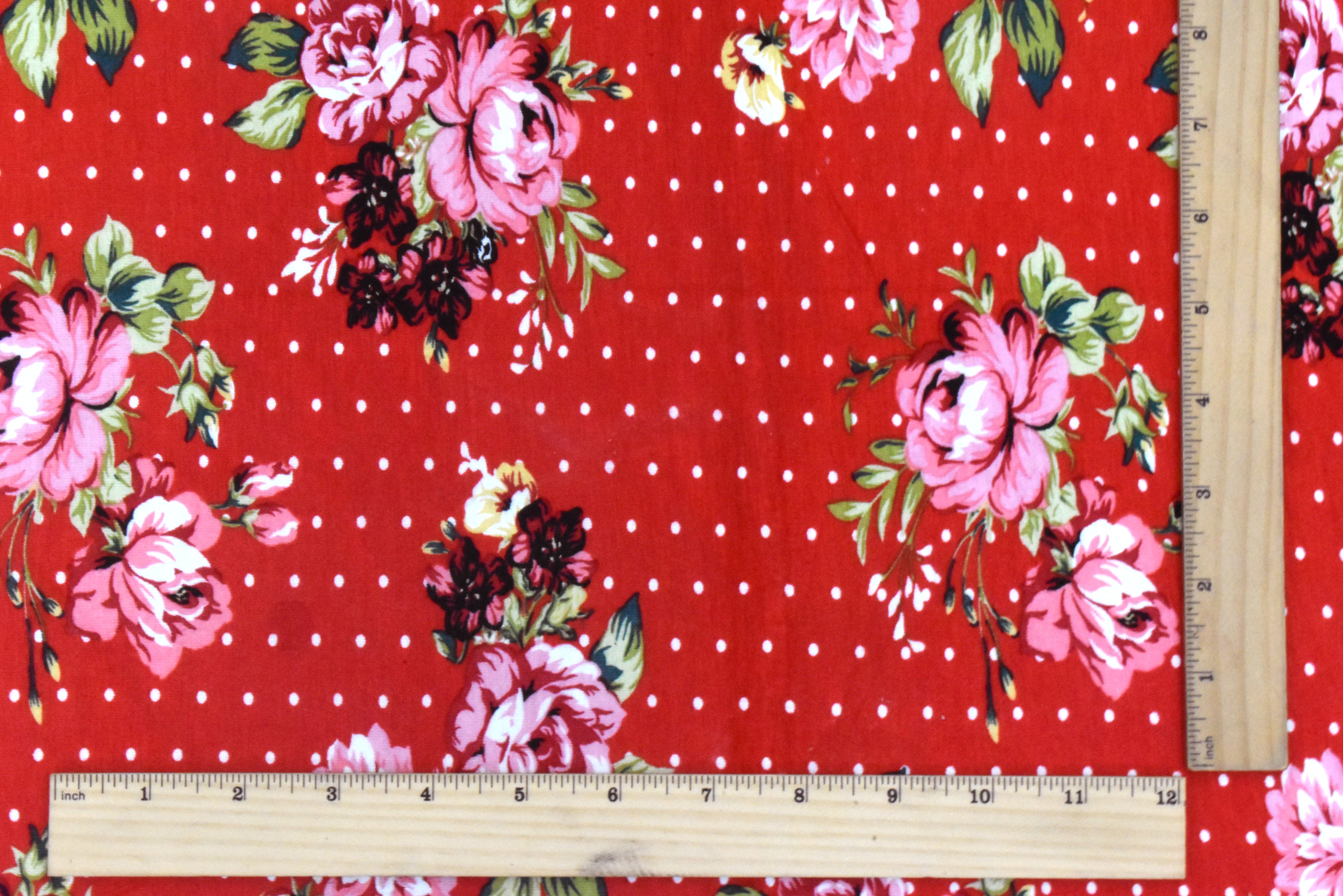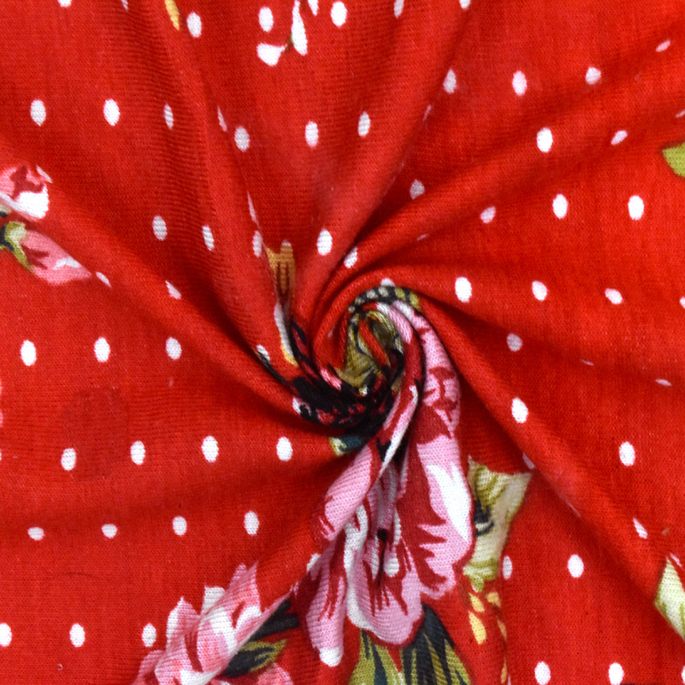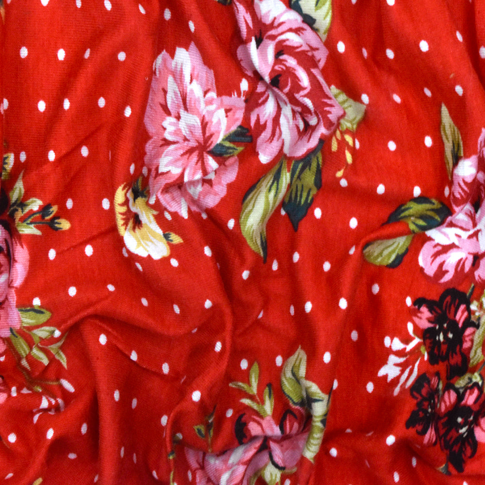 Red-Green-Multi Floral And Dot Print Rayon Stretch Jersey Knit Fabric