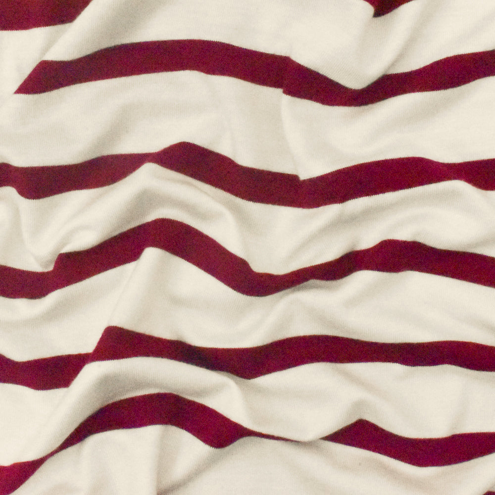 Red-Ivory Stripe Stretch Spandex Rayon Modal Jersey Knit Fabric