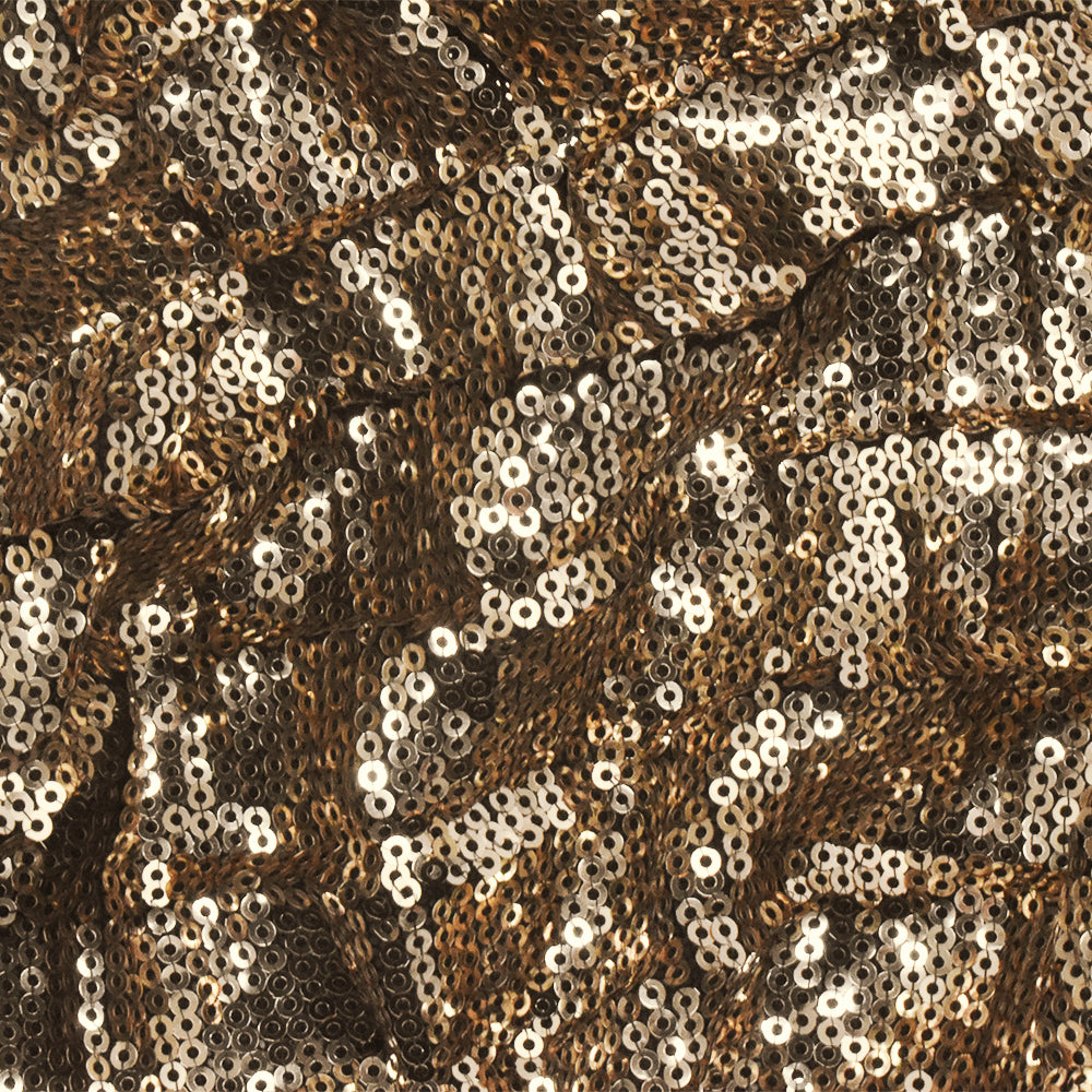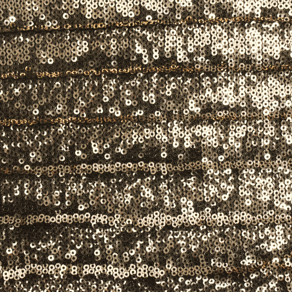 Gold-Black Fully Sequined Pleated Mesh Knit Fabric