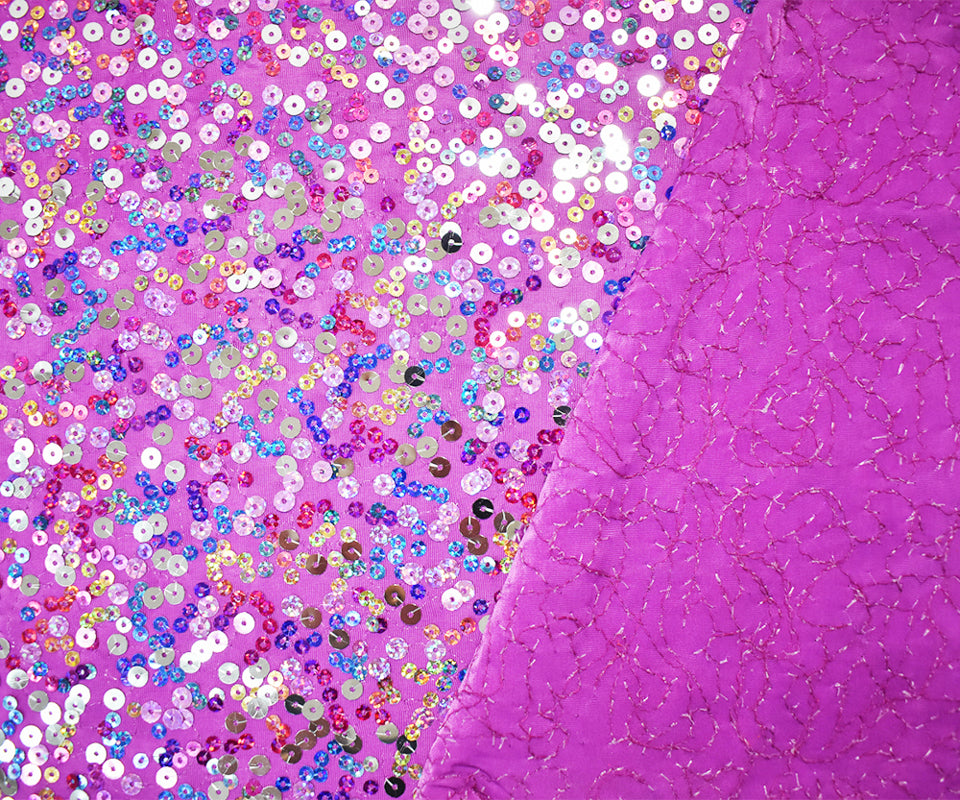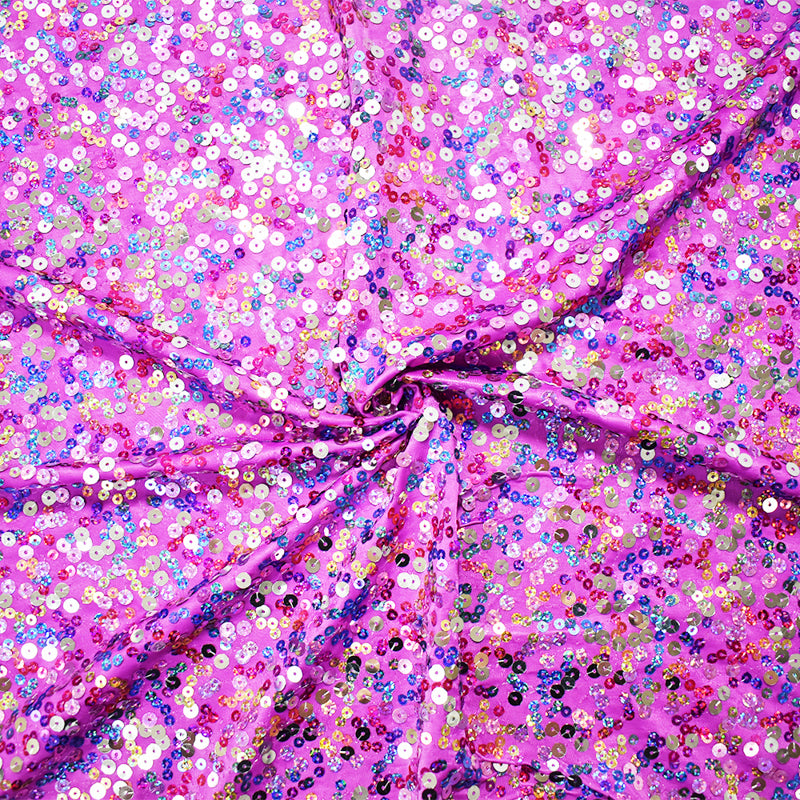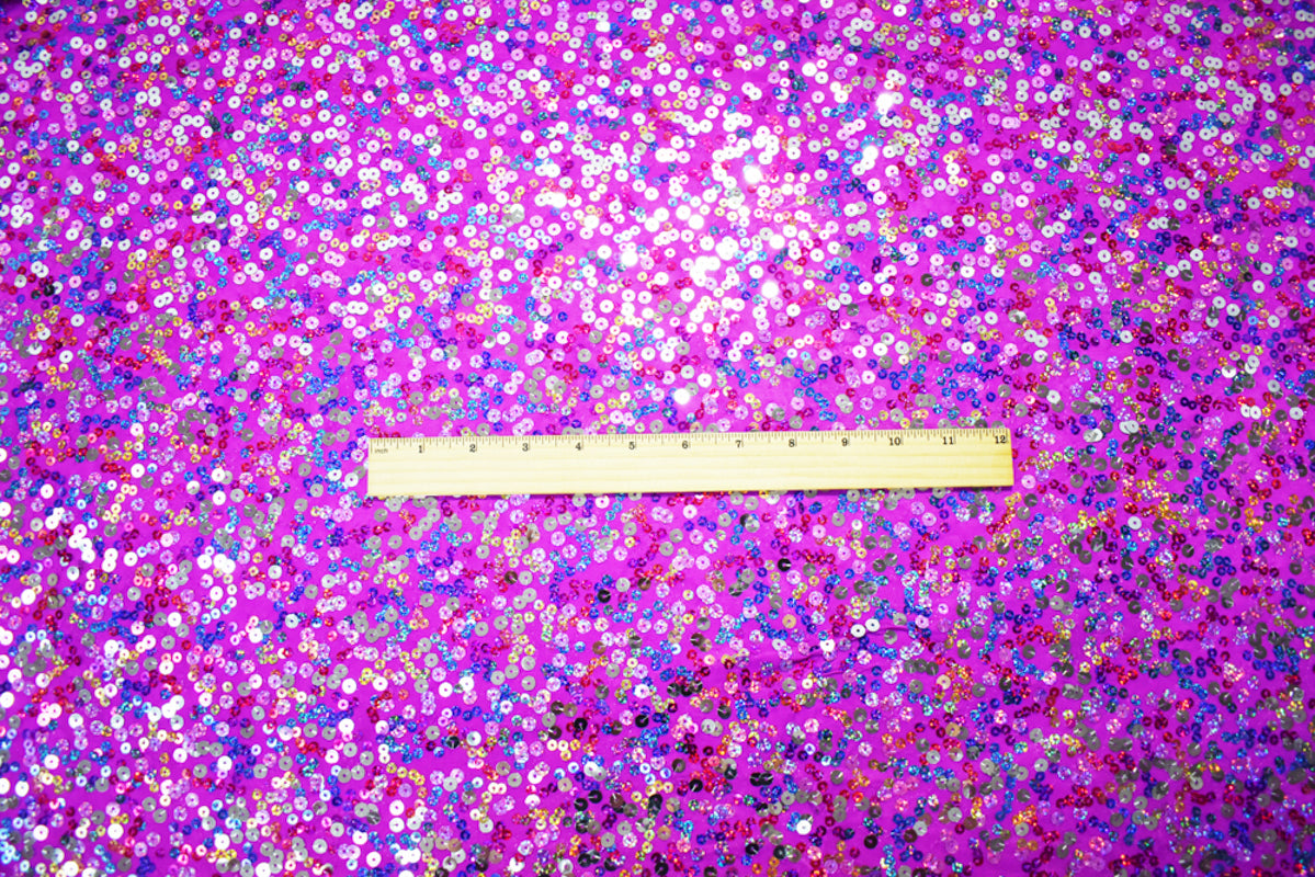 Purple-Pink-Multi Nylon Poly Sequined Stretch Spandex Knit Fabric