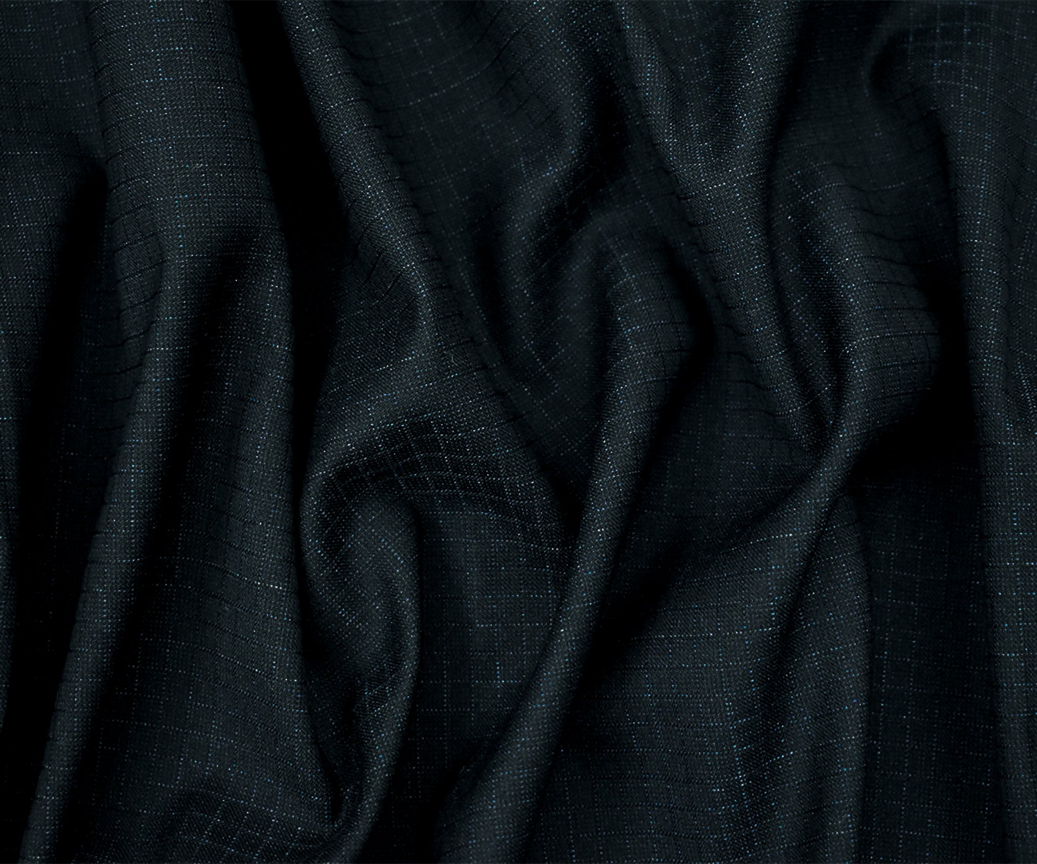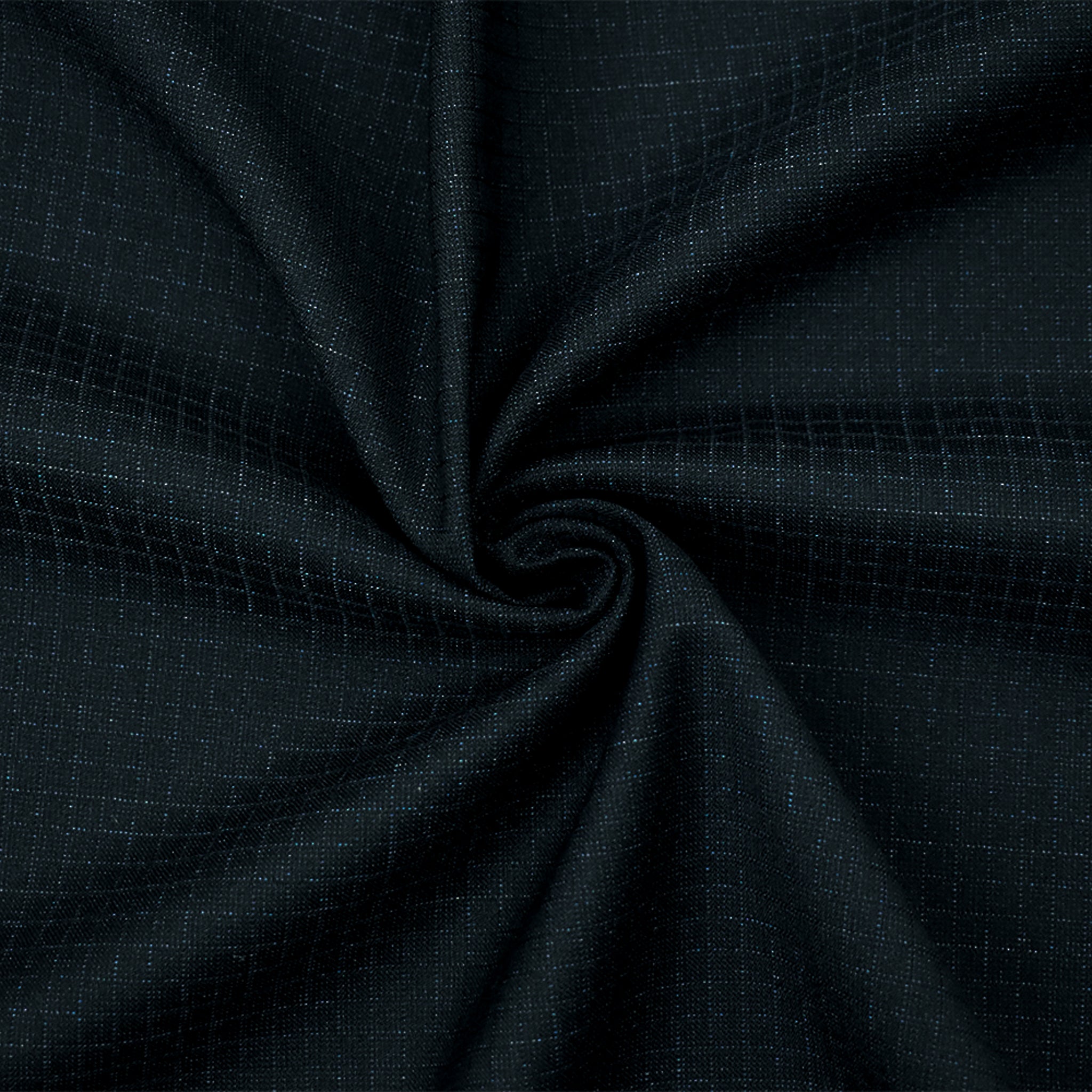 Black-Deep Blue Poly-Wool Stretch Check Grid Shirting Woven Fabric