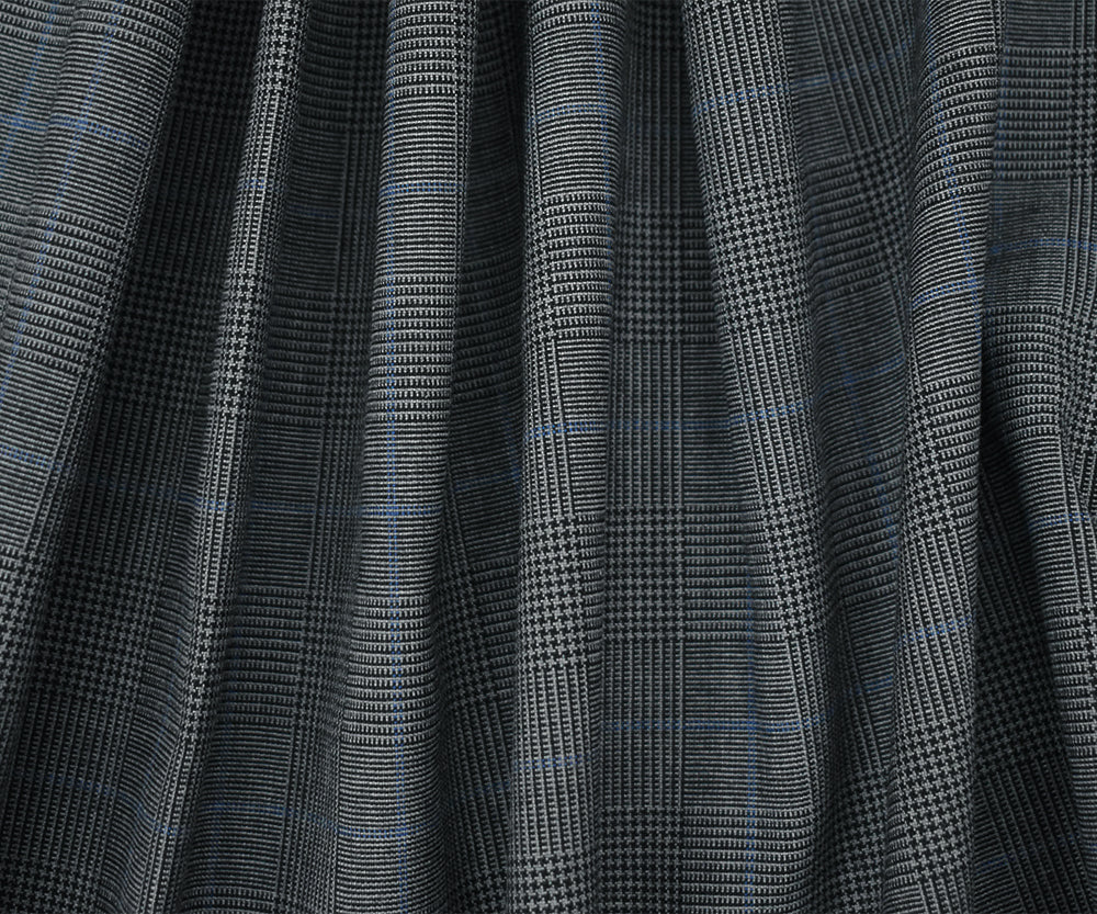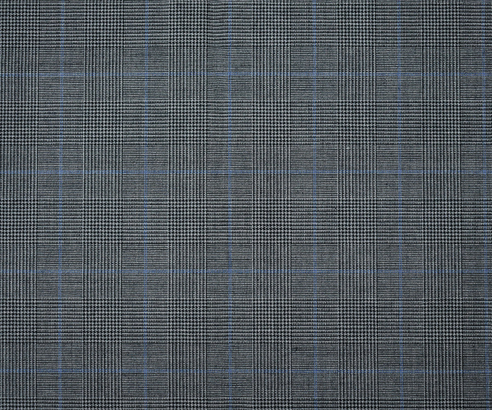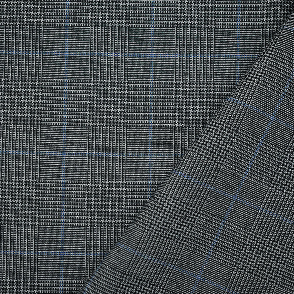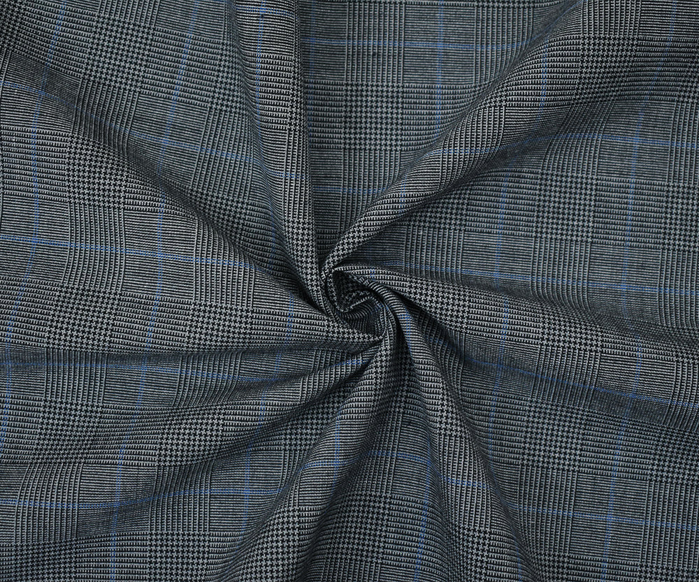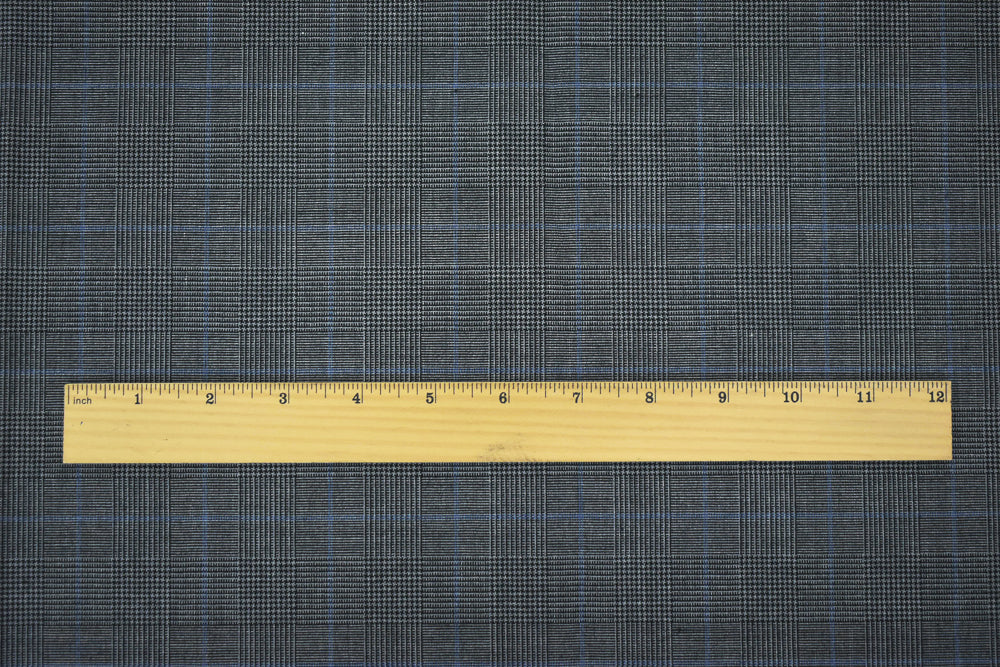 Black-Gray-Blue Wool Polyester Glen Plaid Check Shirting Woven Fabric