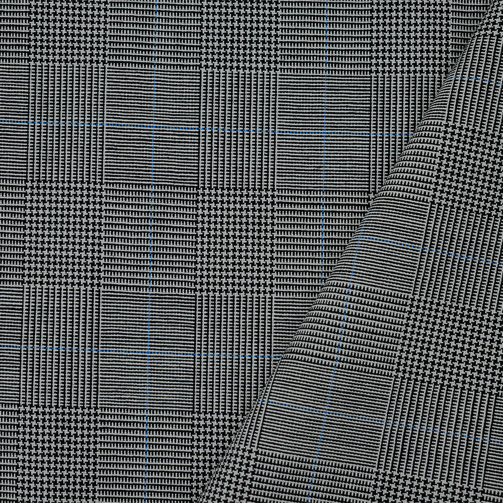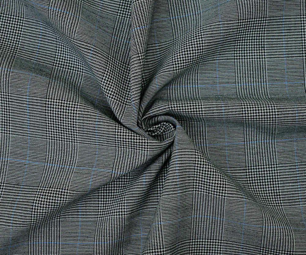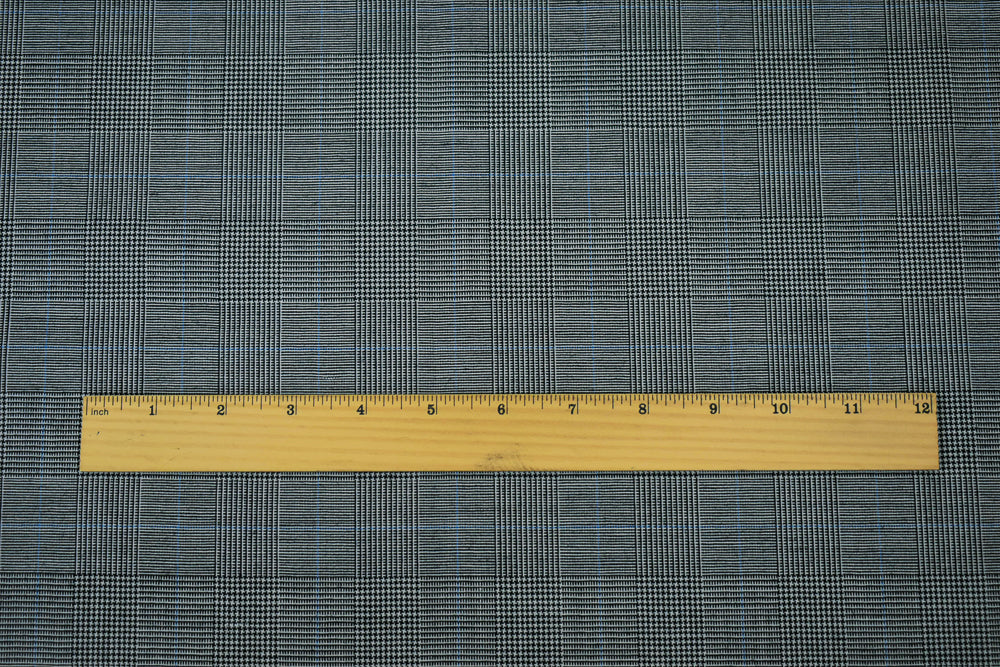 Black-Light Blue-Gray Poly-Wool Glen Plaid Shirting Woven Fabric